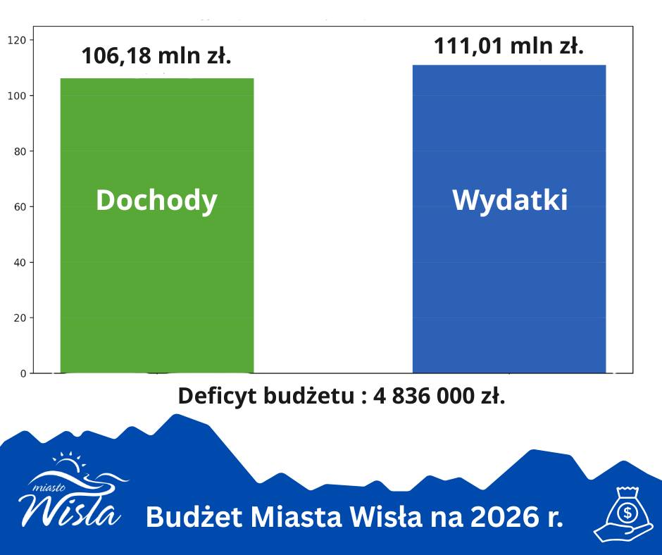 Podczas sesji Rady Miasta Wisła, która odbyła się 18 grudnia, radni przyjęli budżet miasta na 2026 rok. Dokument ten stanowi podstawę realizacji zadań samorządu w bieżącym - 2026 roku.