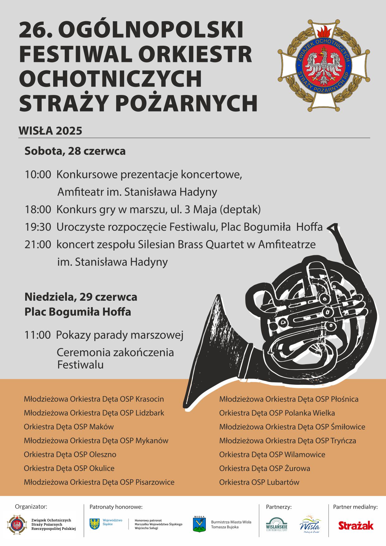 Ogólnopolski Festiwal Orkiestr OSP to wydarzenie o ugruntowanej renomie i wyjątkowym charakterze, które od ponad ćwierćwiecza gromadzi w jednym miejscu najlepsze orkiestry dęte Ochotniczych Straży Pożarnych z całej Polski. Tegoroczna, 26. edycja Festiwalu, odbędzie się w dniach 28–29 czerwca 2025 r. w Wiśle – mieście o bogatych tradycjach kulturalnych i muzycznych.