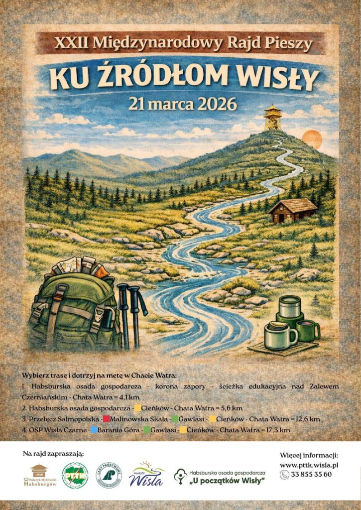 Polskie Towarzystwo Turystyczno-Krajoznawcze Oddział Wisła zaprasza mieszkańców oraz turystów do udziału w XXII Międzynarodowym Rajdzie Pieszym „Ku źródłom Wisły”, który odbędzie się w sobotę, 21 marca 2026 roku. Wydarzenie to od lat gromadzi miłośników górskich wędrówek i jest doskonałą okazją do poznania najpiękniejszych zakątków Beskidu Śląskiego oraz symbolicznego miejsca, jakim są źródła najdłuższej polskiej rzeki.