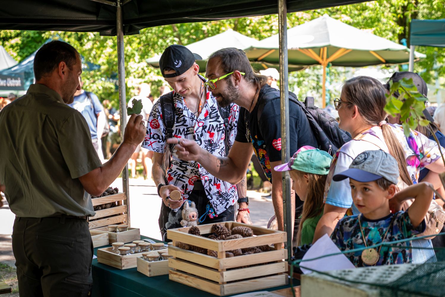 Pierwsza część wydarzenia odbywała się w Parku Kopczyńskiego, gdzie przygotowano wiele atrakcji zarówno dla najmłodszych, jak i dorosłych uczestników. Dzieci mogły wziąć udział w kreatywnych warsztatach plastycznych, animacjach i grach terenowych. Dla miłośników przyrody przygotowano stoiska edukacyjne Lasów Państwowych – z prezentacjami lokalnej flory, grzybów oraz drzew. Nie zabrakło też strefy relaksu, punktu konsultacyjnego programu „Czyste Powietrze” oraz Eko Doradców. Wielkim powodzeniem cieszył się także gulasz z dziczyzny serwowany w plenerze.