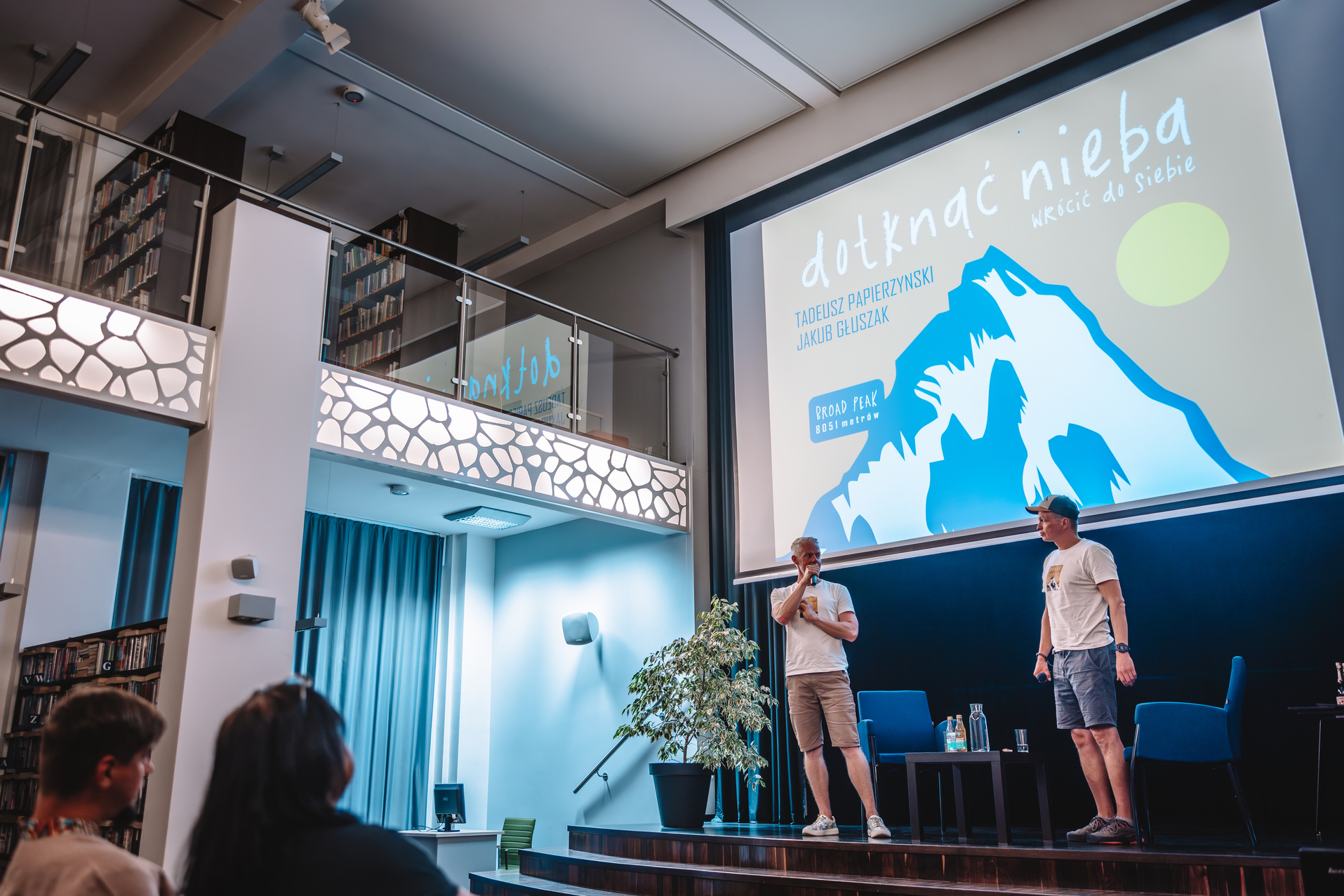 Wczoraj, 12 sierpnia, w Miejskiej Bibliotece Publicznej im. J. Śniegonia w Wiśle odbyło się spotkanie podróżnicze, które poruszyło serca wszystkich obecnych. Biblioteczna sala wypełniła się po brzegi. Przyszli nie tylko mieszkańcy i pasjonaci gór, ale także rodzina, przyjaciele i znajomi bohaterów wieczoru, Jakuba Głuszaka i Tadeusza Papierzyńskiego. Nie zabrakło także przedstawicieli władz naszego miasta w osobie zastępczyni burmistrza Katarzyny Czyż-Kaźmierczak, choć w tym przypadku śmiało możemy powiedzieć, że są oni zaliczani także w poczet znajomych i przyjaciół.