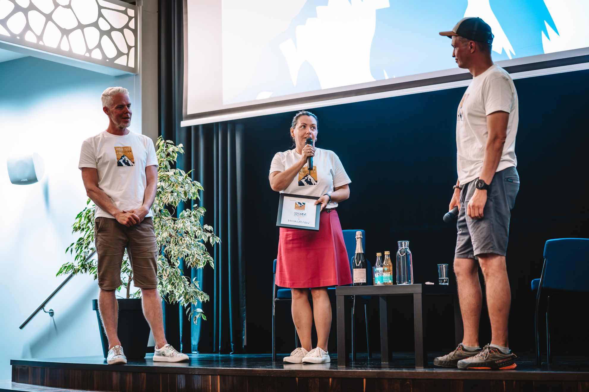 Choć Broad Peak w tym roku nie pozwolił nikomu stanąć na swoim szczycie, nasi goście zgodnie podkreślali, że ta droga była bezcenna, pełna lekcji pokory, wzajemnego zaufania, nowych przyjaźni i wdzięczności. Tadeusz mówił o swoim aniele stróżu, który „miał wtedy dużo pracy”. Zgodnie też oboje podróżnicy mówili o wsparciu ludzi – tych obecnych na miejscu i tych, którzy kibicowali z daleka. Nie zabrakło ciepłych słów pod adresem sponsorów, dzięki którym wyprawa mogła dojść do skutku oraz symbolicznych podziękowań, które panowie wręczyli obecnym na sali przedstawicielom: Miasta Wisła, Wispass, Hotelowi Crystal Mountain, przedsiębiorstwu Cymorek Instal oraz Duda, Willi Maria i Natasza, firmie Nasza Kombucha, Malowany Ptak, Peak Films, Okiem Fotoreportera oraz patronowi medialnemu Radio Katowice.