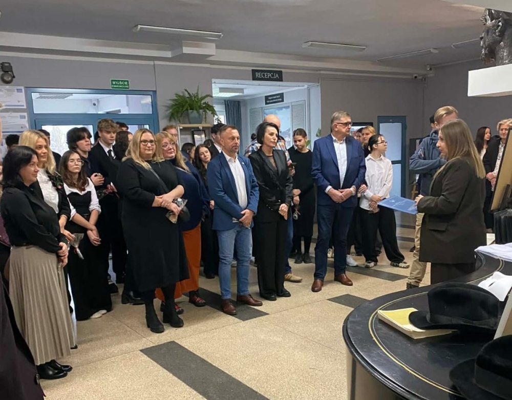 w jubileusz 90-lecia Zespołu Szkół Gastronomiczno-Hotelarskich im. Władysława Reymonta w Wiśle – o czym mówiła pani dyrektor Kornelii Zubek, witając szacownych gości: panią Janinę Żagan - Starostę Powiatu Cieszyńskiego, pan Michała Rajwę – Naczelnika Wydziału Edukacji, panią Danutę Łabaj – Przewodniczącą Komisji Edukacji, panią Anetę Legierską-Bujok – Przewodniczącą Komisji Kultury, Sportu i Promocji, panią Katarzynę Czyż-Kaźmierczak - Zastępczynię Burmistrza Miasta Wisła, pana Zdzisława Pilcha – Radnego Miasta Wisła, pana Zbigniewa Wuwera – Prezesa Wiślańskiego Stowarzyszenia Sportowego, pana dr. Sebastiana Chachołka – Dyrektora Muzeum Magicznego Realizmu w Wiśle, panią Annę Łupieżowiec – Dyrektor Wiślańskiego Centrum Kultury wraz z panią Kamillą Księżnik, panem Andrzejem Drobikiem oraz panem Szymonem Pilchem (zaangażowanymi w realizację podcastu „Zupełna cisza - Reymont w Wiśle").
