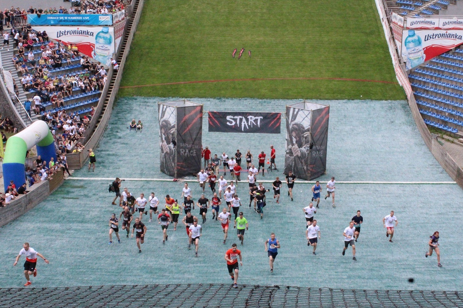 W ramach weekendu pod hasłem Barbarian Race największą popularnością cieszył się właśnie bieg na skocznię! Ponad 1300 osób zgłoszonych i ostatecznie prawie 1100 (z czego ponad 300 kobiet) na starcie to zdecydowanie rekord tej imprezy! Zawodnicy podzieleni zostali na kilknaście fal po około 40-50 osób w każdej grupie, z czego do finału weszło 20 mężczyzn i 10 kobiet z najlepszymi czasami. Finał rozgrywany był około 22:00 przy sztucznym świetle, a zaraz po nim odbył się jeszcze pokaz fireshow w wykonaniu teatru ognia Inferis.