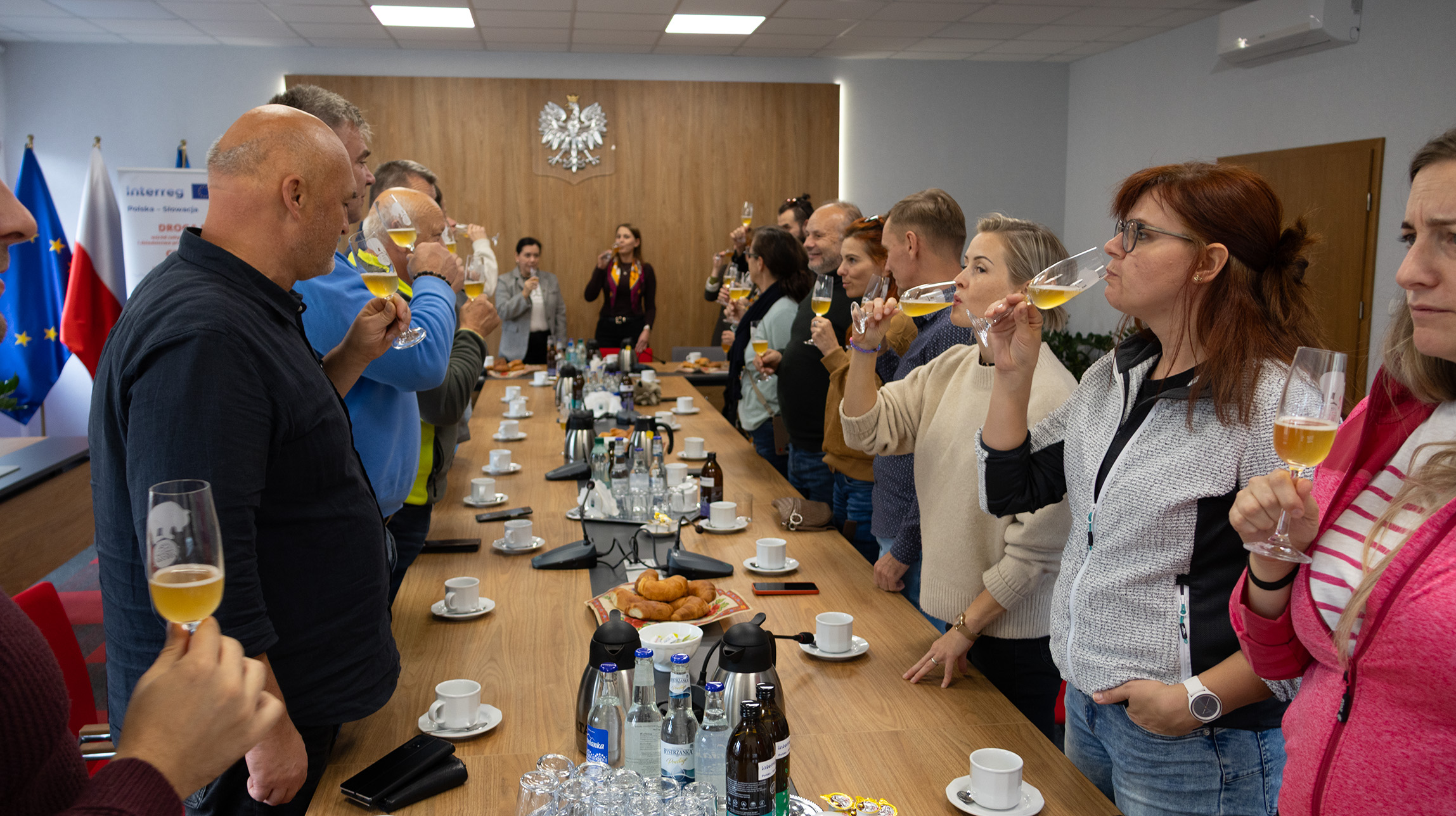 Gości z Rużemberka powitała w sali sesyjnej Urzędu Miasta Wisła zastępczyni burmistrza Katarzyna Czyż-Kaźmierczak, która wzniosła symboliczny toast lampką kombuchy - naturalnego napoju produkowanego przez lokalną firmę Nasza Kombucha, będącą partnerem miasta. Spotkanie rozpoczęło się projekcją filmu promującego Wisłę, a następnie uczestnicy wzięli udział w spacerze po mieście z przewodnikiem. W programie znalazła się wizyta w Muzeum Beskidzkim oraz w Enklawie Budownictwa Drewnianego, gdzie goście mogli poznać bogatą tradycję beskidzkiej architektury drewnianej. O tym dziedzictwie opowiedział Michał Kawulok, natomiast wieczorem w pensjonacie Geovita odbyła się prezentacja pt. „Atrakcyjność turystyczna Wisły, jej największe atuty”, przygotowana przez Karolinę Fuchs, kierownik Referatu Promocji, Turystyki, Kultury i Sportu Urzędu Miasta Wisła. Dzień zakończył się wspólną kolacją z biesiadą góralską i muzyką na żywo.