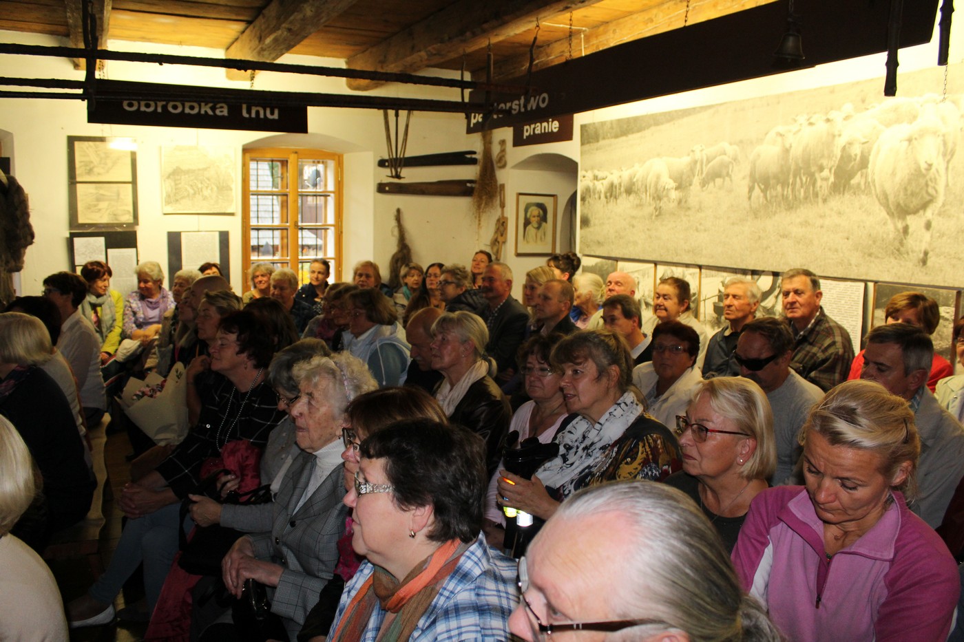 Drewniane kadzie z paleniskami – przeznaczone do grzania wody znajdują się w wnętrzu budynku folusza. Proces folowania: tkaninę utkaną na krosnach w kadzi przesypywało
