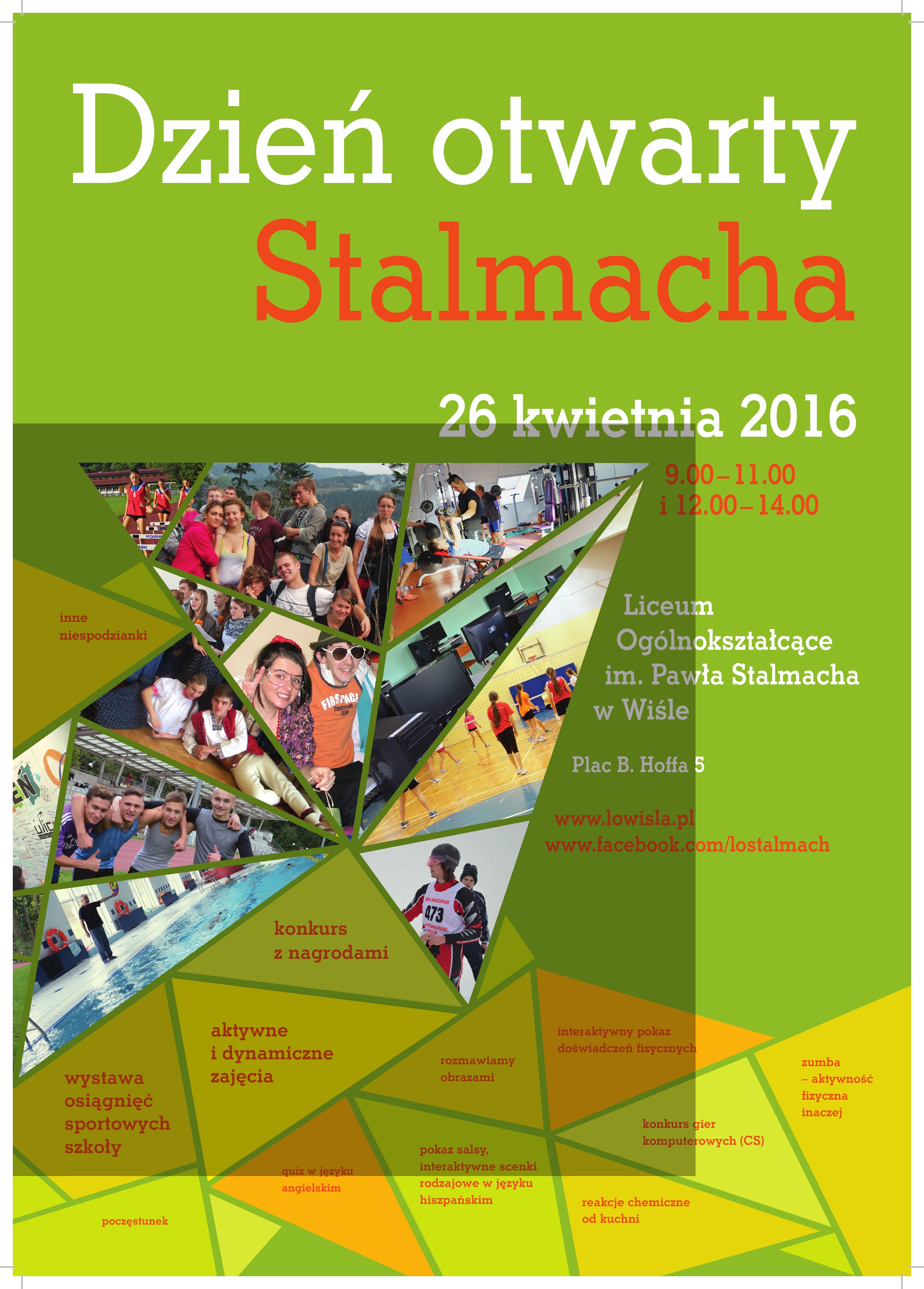 26 kwietnia Liceum Ogólnokształcące im. P. Stalmacha w Wiśle zaprasza na Dzień Otwarty. Wydarzenie odbędzie się w dwóch odsłonach, pierwszej w godz. 9:00-11:00 i drugiej w godz. 12:00 - 14:00.