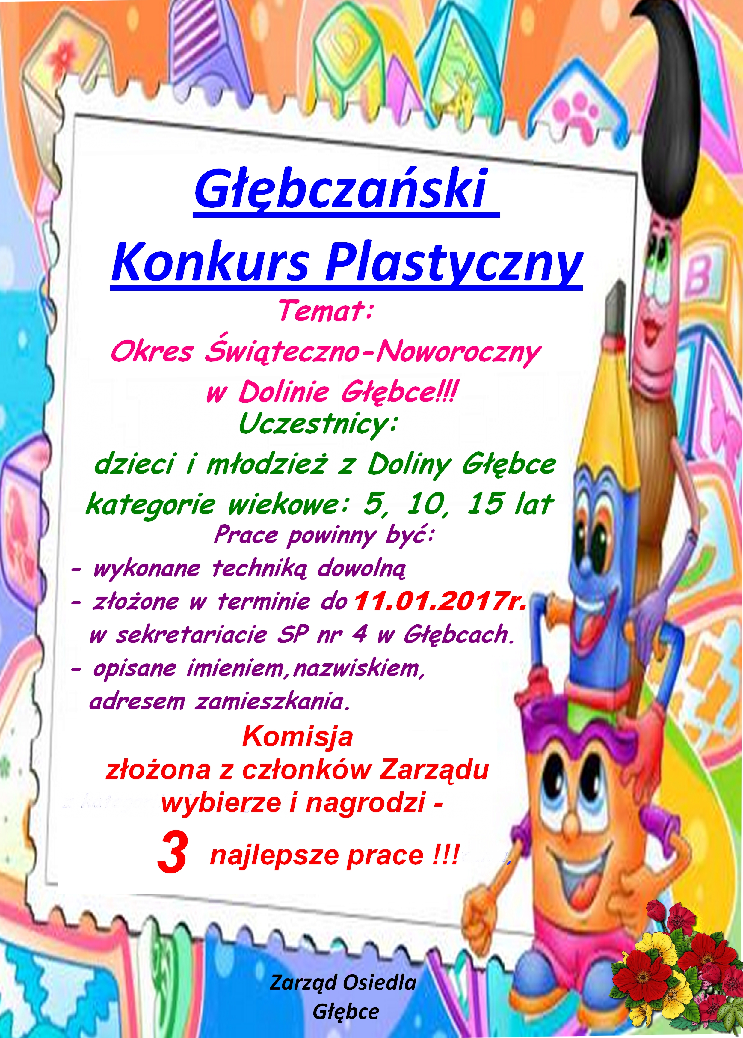 Termin składania prac w sekretariacie Zespołu Szkolno-Przedszkolnego nr 4: 11 stycznia 2017 r.
