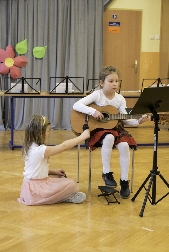 Po przemówieniu dyrektor Szajtauer nadszedł czas na występy artystyczne w wykonaniu uczniów SP2. Na początku wierszem przywitali zebranych uczniowie klasy I. Po nich wystąpili uczniowie klasy V, którzy zaprezentowali piosenkę pt. „Szkolny blues” oraz dwa humorystyczne skecze. Następnie zgromadzeni mogli obejrzeć program słowno-muzyczny oddziału przedszkolnego oraz układ choreograficzny dziewczynek z klasy II. Później usłyszeli utwór na dzwonkach chromatycznych wykonany przez uczniów klas IV i V, piosenkę w wykonaniu uczniów klasy III, a także utwór na dzwonkach zagrany przez szóstoklasistów. Występy te były przeplatane utworami wykonywanymi przez uczniów szkoły muzycznej i ogniska muzycznego działającego przy szkole. Na zakończenie tej części programu wszyscy zgromadzeni goście odśpiewali pieśń pt. „U stóp Barani”.
