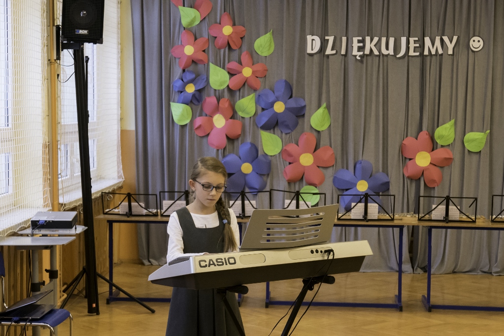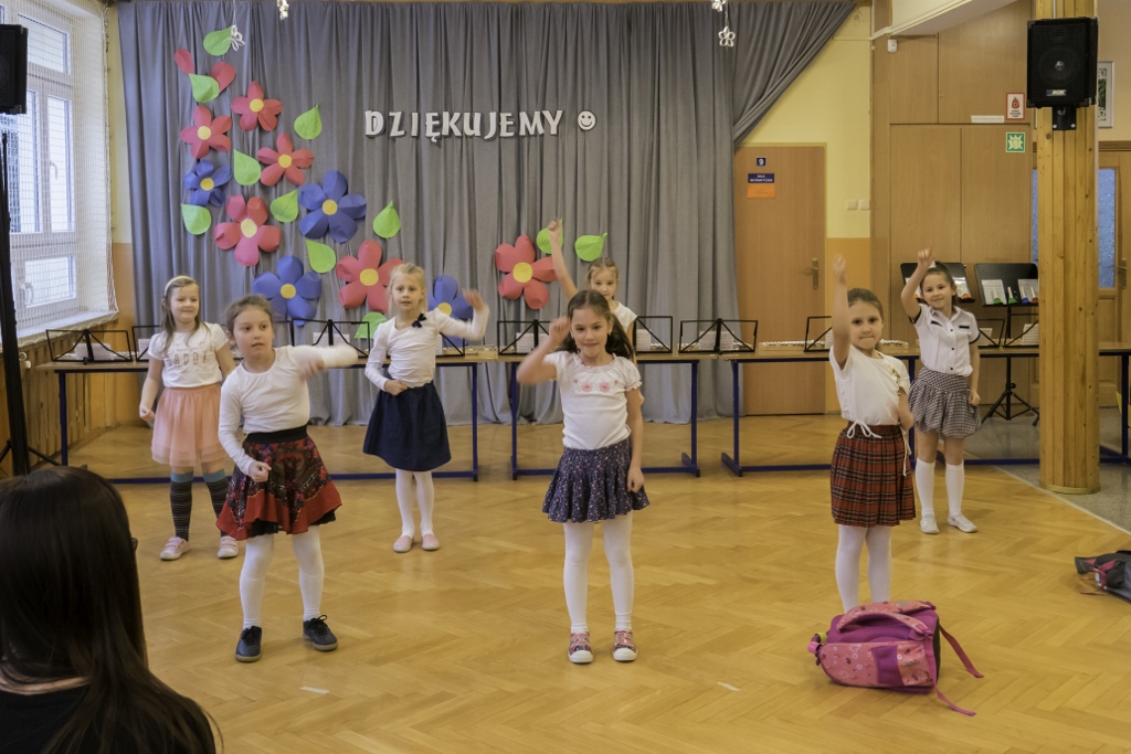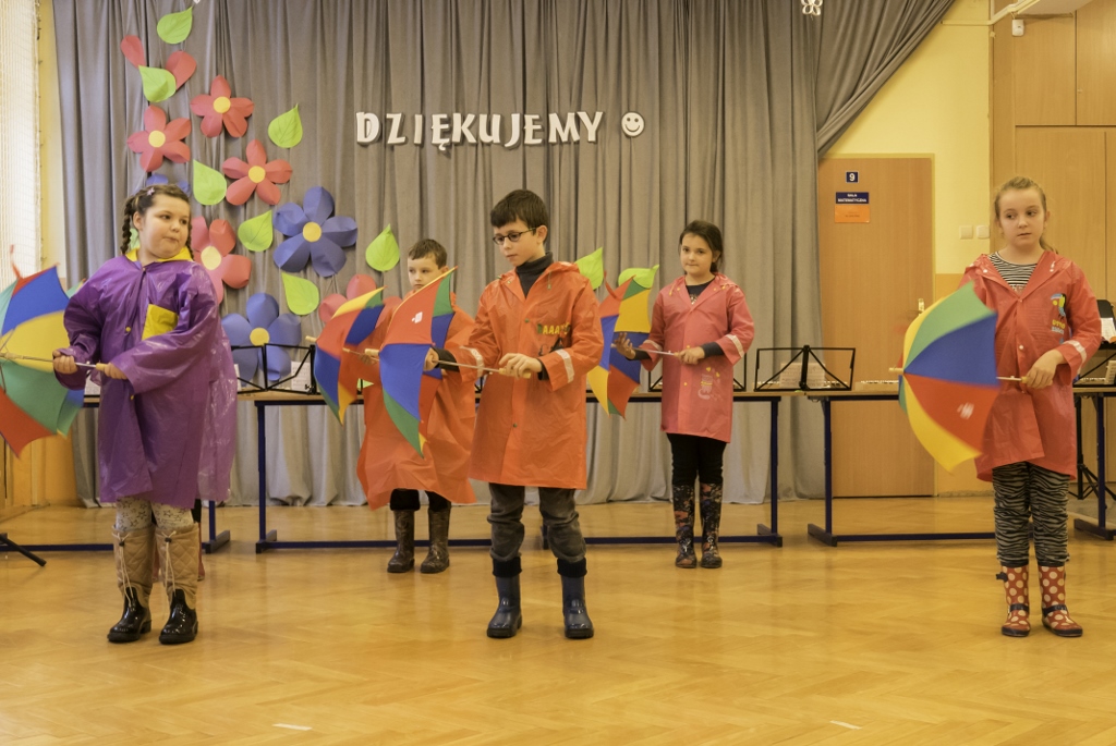 Program rozpoczął się od przywitania gości i złożenia przez dyrektor Elżbietę Szajtauer podziękowań wszystkim przyjaciołom szkoły, za pomoc, którą placówka uzyskuje na co dzień. Następnie przedstawiła pokrótce działania, podejmowane w szkole. Pani dyrektor zauważyła, że wokół szkoły zawsze gromadziły się osoby pracowite, twórcze, kreatywne, poszukujące najlepszych rozwiązań oraz otwarte i wrażliwe na potrzeby dzieci i środowiska. Osoby, którym na sercu leżała przyszłość tej placówki. Dzięki ich entuzjazmowi i zaangażowaniu udało się stworzyć szkołę przyjazną, kolorową i otwartą na nowe.