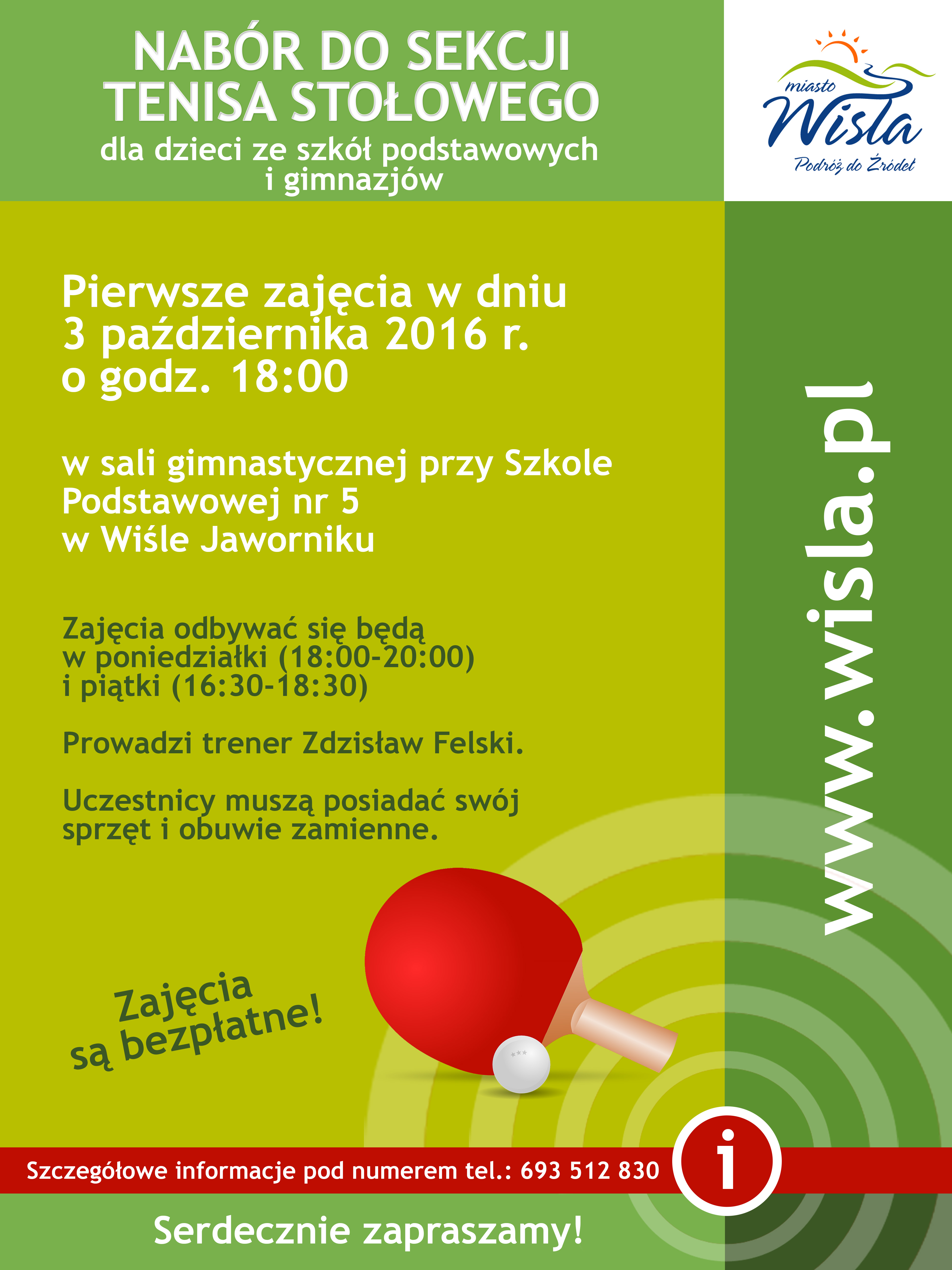 Pierwsze zajęcia odbęda się w dniu 3 października (poniedziałek) o godz. 18:00 w sali gimnastycznej przy Szkole Podstawowej nr 5 w Wiśle Jaworniku.