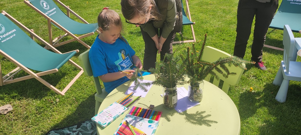 - stoisko edukacyjne Lasów Państwowych z różnymi zagadkami i zadaniami o tematyce przyrodniczej