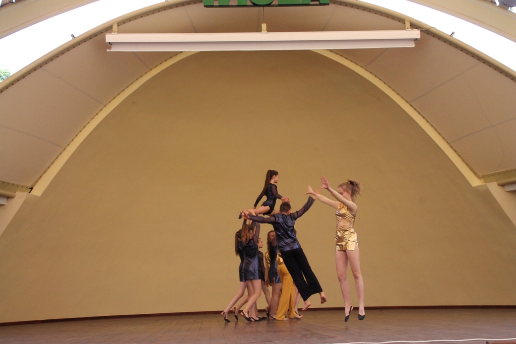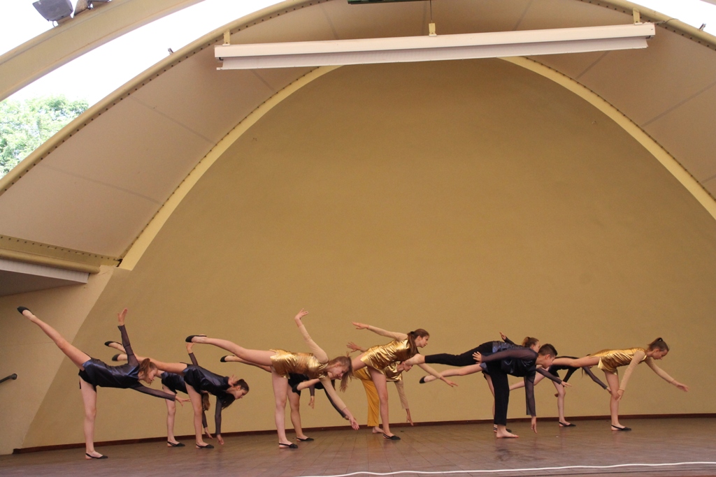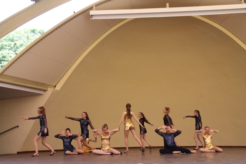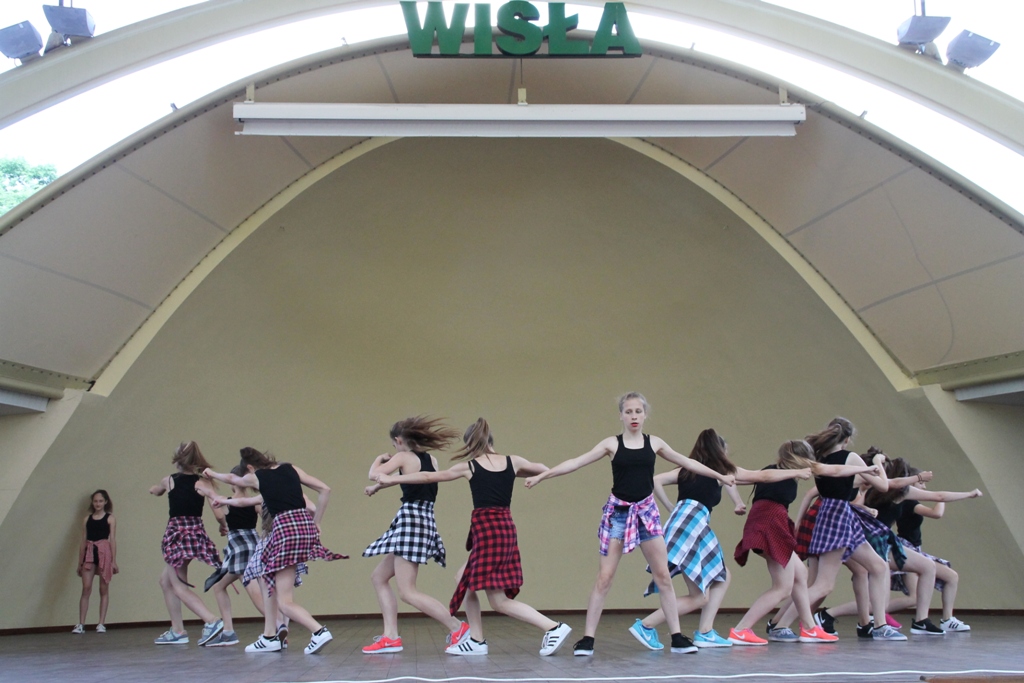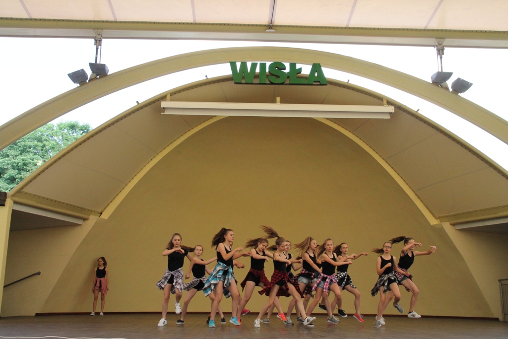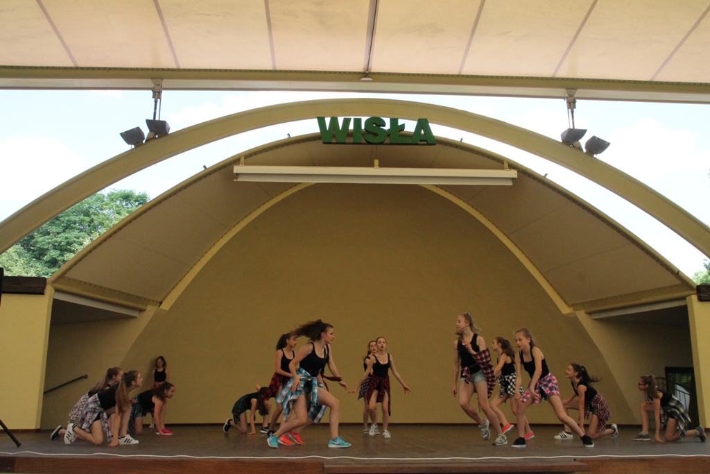 W środę w samo południe w wiślańskim amfiteatrze odbyły się pierwsze pokazy taneczne IX Letniego Festiwalu Tańca Piotra Galińskiego. Zaprezentowały się trzy grupy wiekowe ze Studia Tańca ze Skierniewic 4 - 20.