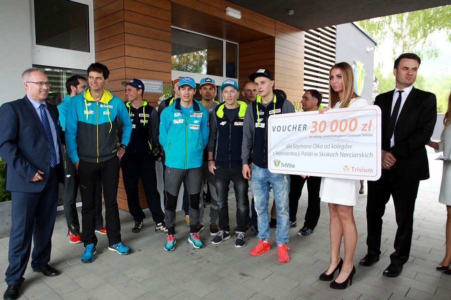 Na zakończenie zgrupowania w Szczyrku Kadra Narodowa A polskich skoczków narciarskich uczestniczyła 13 maja w uroczystym otwarciu Ogólnopolskiego Centrum Nowoczesnej Rehabilitacji i Opieki TriVita w Porąbce. Dzięki wsparciu naszych zawodników klinika ufundowała voucher o wartości 30 tysięcy złotych na rehabilitację Szymona Olka. Dwa lata temu ten młody skoczek narciarski miał wypadek podczas zawodów i od tego czasu przechodzi kosztowną rehabilitację, która jest dla niego jedyną szansą na powrót do pełnej sprawności.
