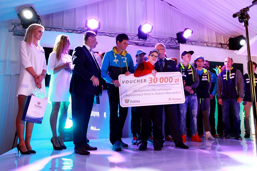 Ogólnopolskie Centrum Nowoczesnej Rehabilitacji i Opieki TriVita w Porąbce realizuje nowoczesną rehabilitację neurologiczną ortopedyczną i przeciwobrzękową, a także zajmuje się opieką pielęgnacyjną dla rezydentów i seniorów, oferując dostęp do wysokiej klasy specjalistów w tych dziedzinach medycyny. W piątkowym uroczystym otwarciu obiektu udział wzięło wiele znanych osobistości, w tym Kadra Narodowa A polskich skoczków narciarskich. - Dziękujemy wam panowie, że po treningu znaleźliście czas i ochotę i jesteście tutaj z nami dla Szymona. To cudny gest od przyjaciół – zaznaczył prowadzący imprezę Olivier Janiak. Zaangażowanie naszych skoczków w akcję pomocy Szymonowi Olkowi sprawiło, że TriVita ufundowała voucher o wartości 30 tysięcy złotych na rehabilitację chłopca. Szymek był bardzo szczęśliwy z cennego prezentu. – Kocham was! – wykrzyknął stojąc na scenie wraz ze swoimi starszymi kolegami ze skoczni.