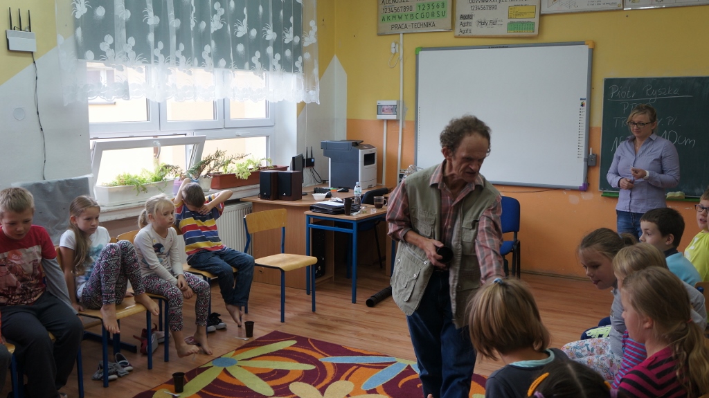 Na koniec należy wspomnieć o bardzo ważnym gościu, który odwiedził szkołę. Pan Piotr Ryszka przybliżył uczniom tematykę SM (stwardnienie rozsiane), opowiedział o swojej chorobie i nieustannej walce z nią. Uczniowie aktywnie uczestniczyli w warsztatach, poznając i wczuwając się w role chorych osób. Spotkanie zostało nagrodzone gromkimi brawami. Pan Piotr podziękował za udział w warsztatach dzieciom i pogratulował nauczycielom wspaniałych uczniów.