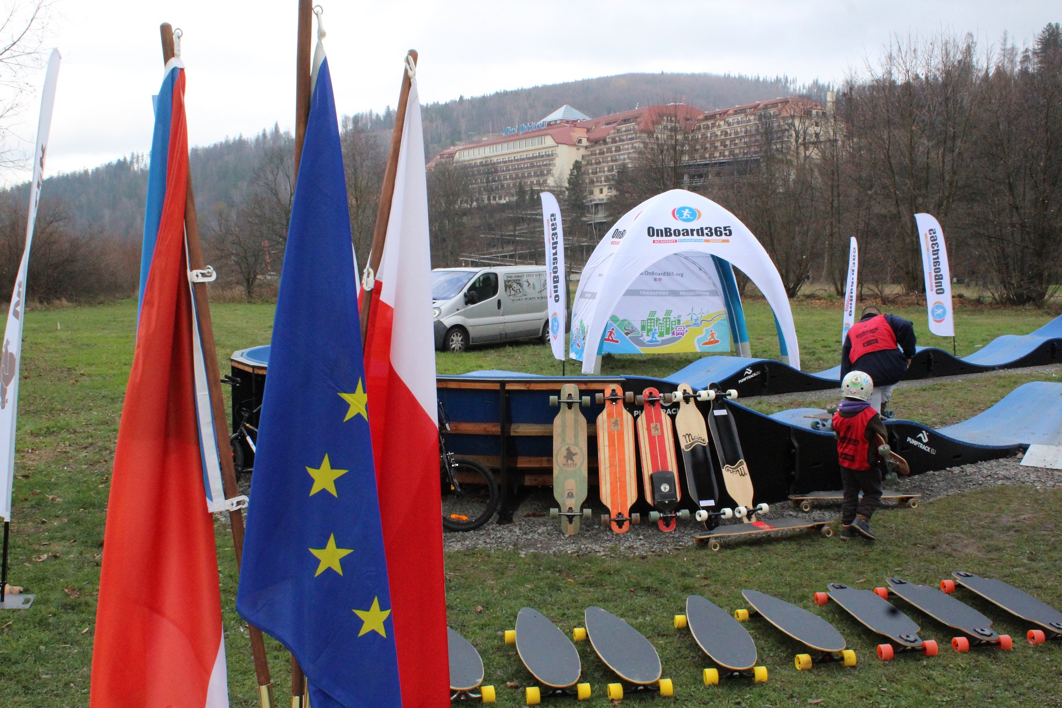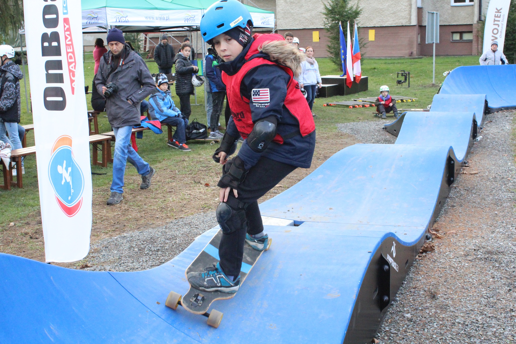 Sportowa rywalizacja odbyła się w obecności przedstawicieli czeskiego partnera projektu. Imprezę poprowadzili członkowie Fundacji OnBoard, rozpoczynając od krótkiego instruktażu. Każdy uczestnik mógł spróbować jazdy na torze, część wybrała longboardy, niektórzy próbowali swoich sił na rowerach typu BMX. Dzieciaki radziły sobie świetnie, mimo że większość nigdy wcześniej nie próbowała jazdy na pumptracku. Po seriach próbnych rozpoczęły się zawody w dwóch kategoriach: longboard i rower. Rywalizacja była bardzo zacięta, a różnice między poszczególnymi zawodnikami niewielkie. Sportowe emocje podkręcała zaangażowana publiczność. Gorąca kawa i herbata chroniły uczestników przed zimnem, a drożdżówki i banany uzupełniały spalone kalorie.