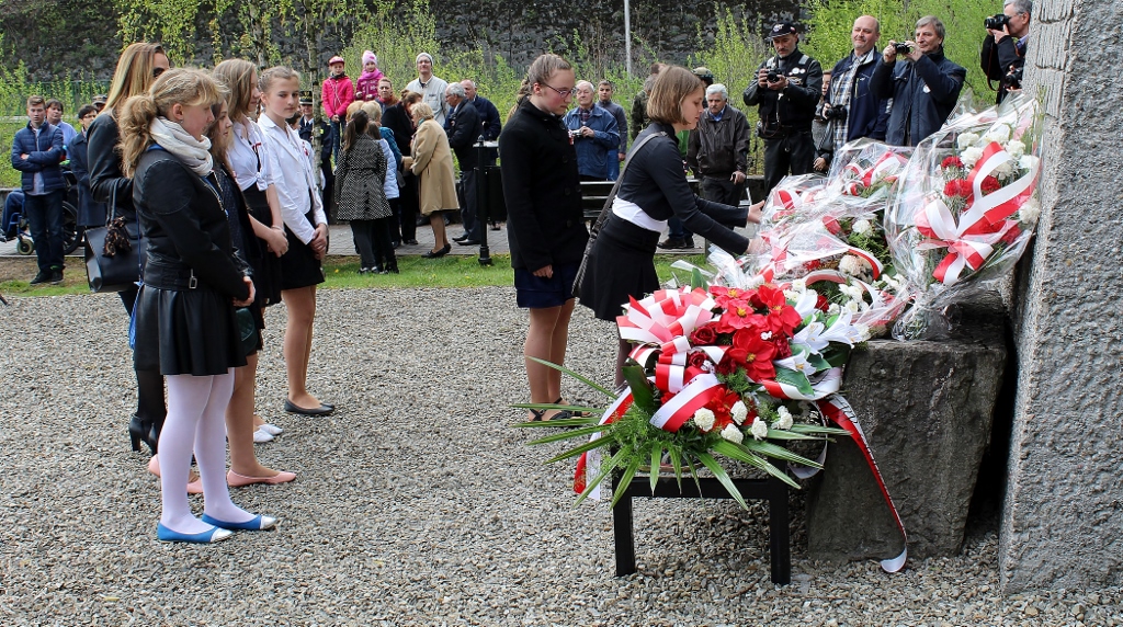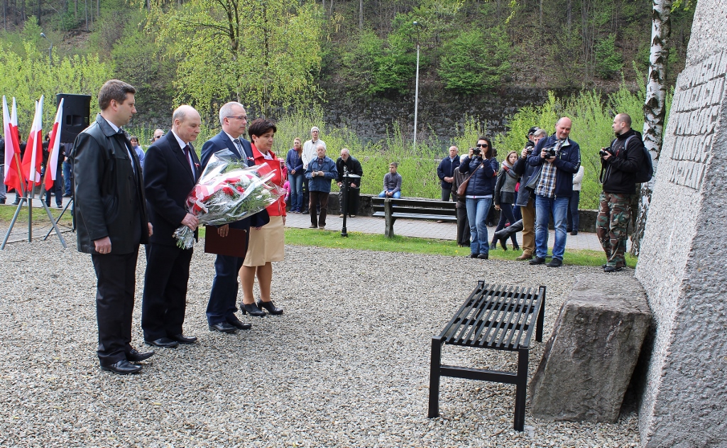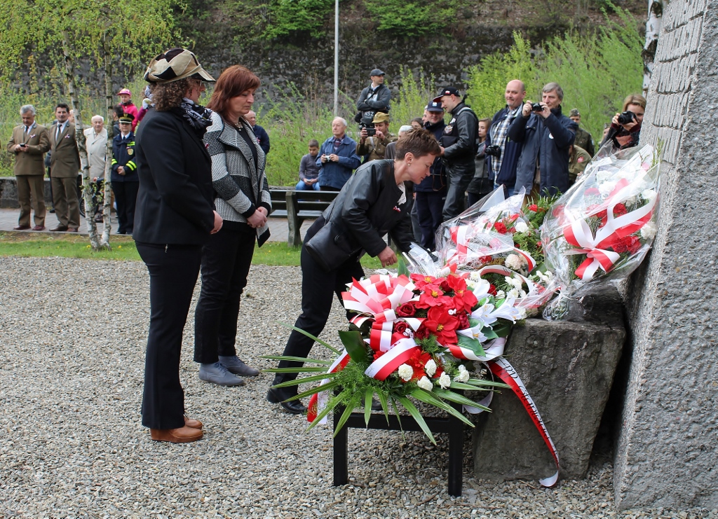 Po modlitwie, przy werblach orkiestry, nastąpiło tradycyjne złożenie wiązanek kwiatów pod Pomnikiem Poległym i Walczącym o Polskość i Wolność Ojczyzny. Kwiaty składały delegacje: Urzędu Miejskiego w Wiśle, Rady Miasta Wisła, Rezydencji Prezydenta RP, Zarządów Osiedli w Wiśle, Związku Polskich Spadochroniarzy, Związku Żołnierzy Narodowych Sił Zbrojnych, Posła na Sejm RP Stanisława Pięty, Uczestników Rajdu Bartka, Policji i Straży Miejskiej, Ochotniczych Straży Pożarnych, Wiślańskiego Centrum Kultury, Towarzystwa Miłośników Wisły, Zespołu Szkół nr 1 Wisła Centrum, Szkoły Podstawowej nr 2 Wisła Czarne, Zespołu Szkolno–Przedszkolnego nr 2 Wisła Malinka, Zespołu Szkolno-Przedszkolnego nr 1 Wisła Głębce, Szkoły Podstawowej nr 5 Wisła Jawornik, Liceum Ogólnokształcącego im. P. Stalmacha, Zespołu Szkół Gastronomiczno–Hotelarskich im. W. Reymonta oraz Stowarzyszenia „Wdzięczni za Ojczyznę”.