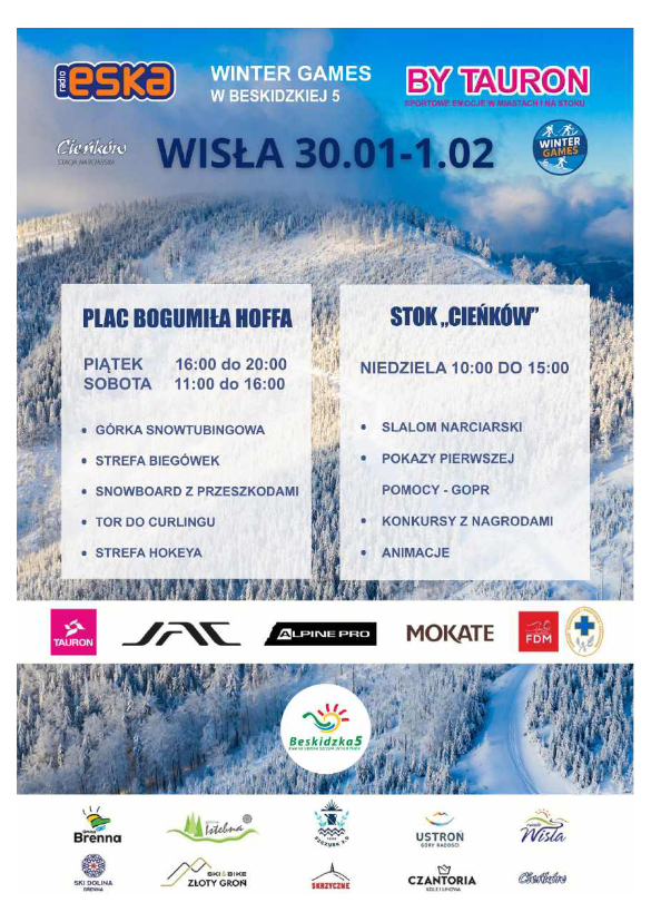 ESKA Winter Games by Tauron zawitają do Wisły! Już od najbliższego piątku do niedzieli Wisła zamieni się w prawdziwą stolicę zimowych emocji. W ramach ESKA Winter Games by Tauron na mieszkańców i turystów czeka mnóstwo sportowych atrakcji - zarówno w centrum miasta, jak i na stoku.