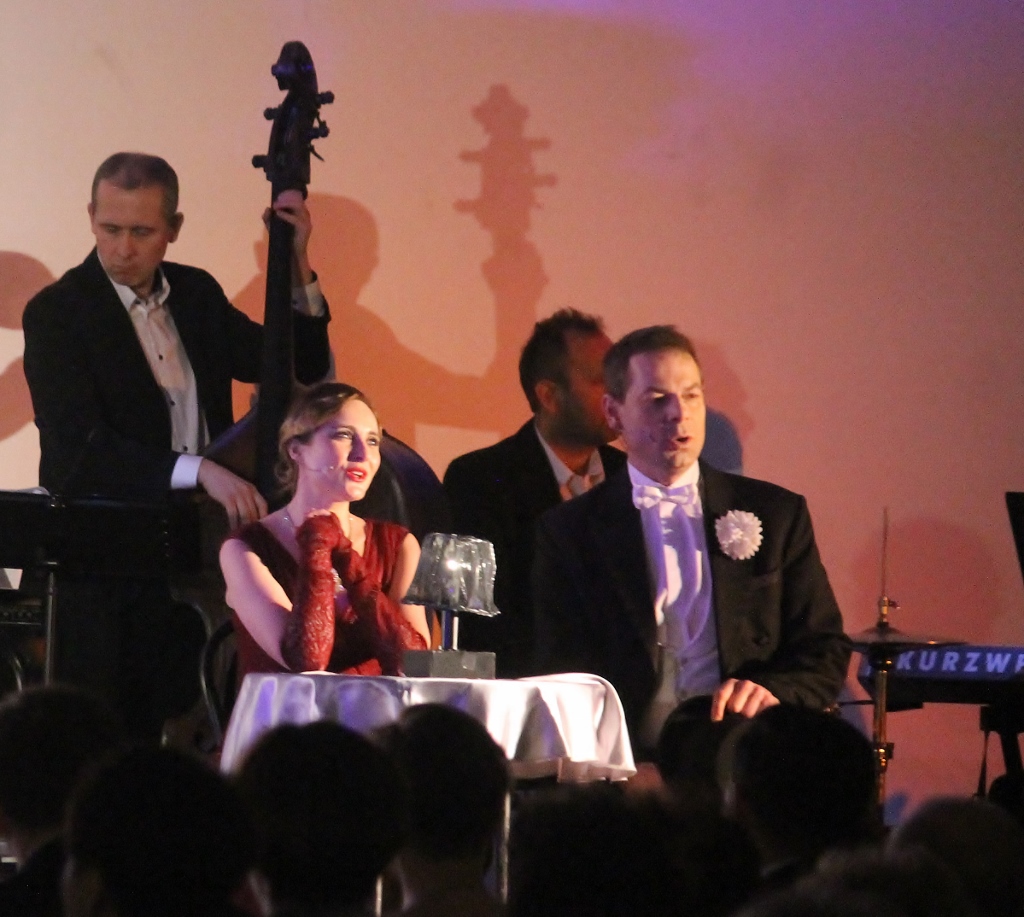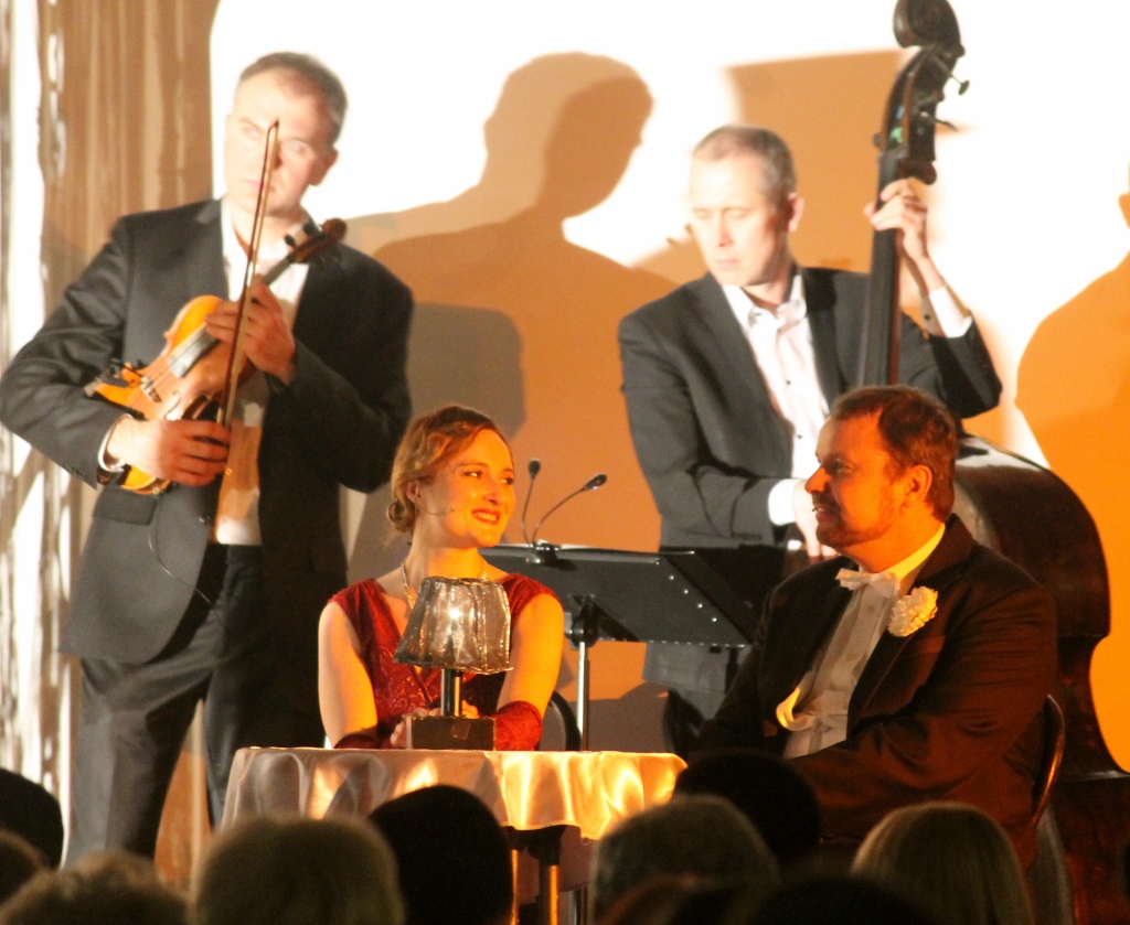 Po podpisaniu umów gospodarze obu miejscowości wymienili się podarunkami, a następnie Grażyna Durlow zaprosiła na muzyczną ucztę, która przeniosła widzów do okresu przedwojennego. „Ta ostatnia niedziela” czy „Miłość ci wszystko wybaczy” to tylko kilka piosenek z wielu, które pięknie zabrzmiały w nowych aranżacjach zespołu pod kierunkiem Tomasza Pali. Do tego wspaniały kunszt wokalny aktorów Sceny Polskiej Cieszyńskiego Teatru, oryginalne kostiumy i scenografia - wszystko to pomogło publiczności udać się w podróż w czasie do tamtych, dawno minionych lat. Spektakl w reżyserii Bogdana Kokotka był znakomity i zapewne jeszcze długo pozostanie w pamięci osób, które postanowiły niedzielny wieczór spędzić na Koncercie Noworocznym.