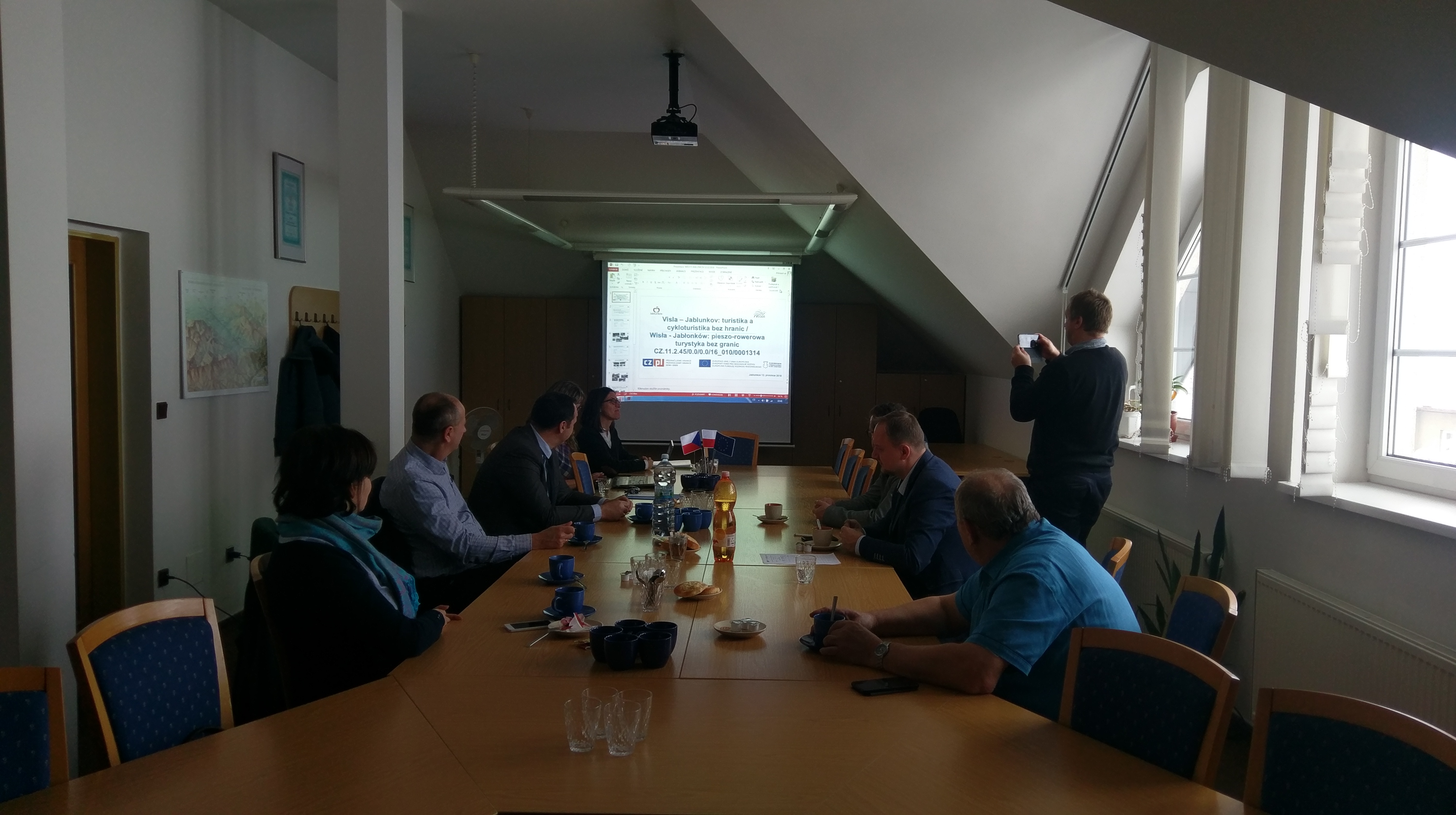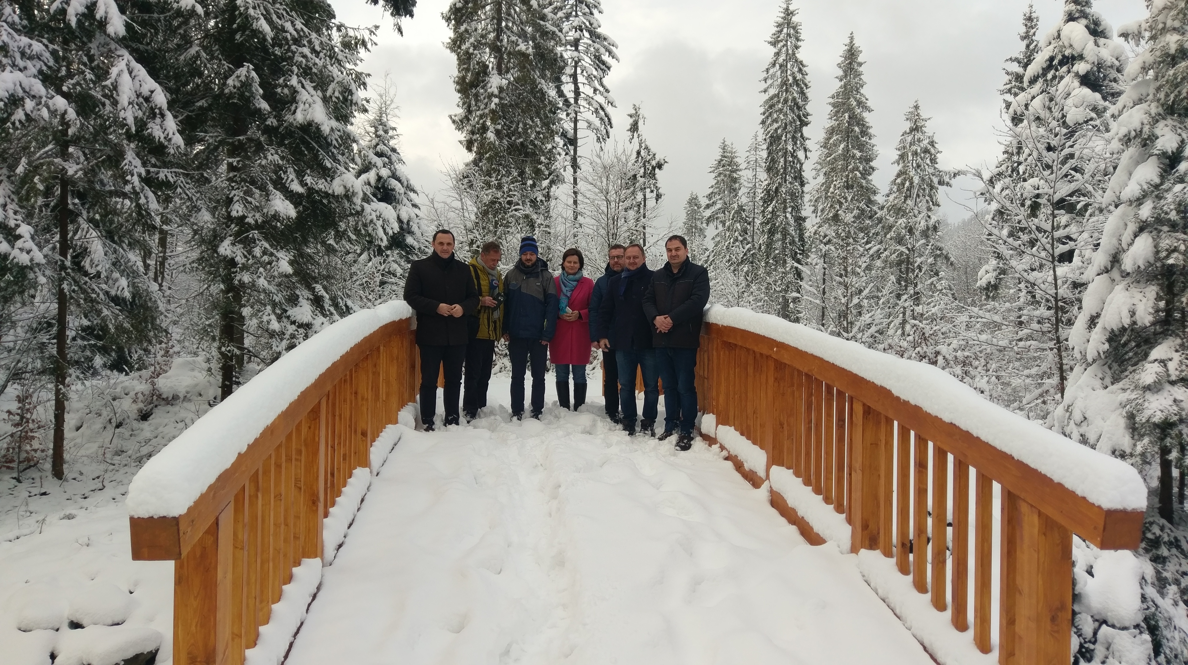 W zimowej aurze podsumowanoy wczoraj realizację projektu partnerskiego „Wisła - Jabłonków: pieszo-rowerowa turystyka bez granic”. Spotkanie w Jabłonkowie zainaugurowało pierwszy punkt programu – prezentację czeskiej części projektu. Jabłonków jako partner wiodący w projekcie, wykonał edukacyjną ścieżkę w Lasku Miejskim. Współautorka projektu – Kateřina Černohorská oraz Monika Motyková – specjalista ds. projektów w jabłonkowskim ratuszu, opowiedziały o wykonanej inwestycji, posiłkując się obszerną dokumentacją zdjęciową miejsca inwestycji. Po prezentacji przedstawiciele obu partnerów wybrali się do Muzeum Biblii, po czym ruszyli do Wisły, gdzie polski partner zabrał gości na pieszo-rowerową ścieżkę w dolinie Czarnego. Efekty zrealizowanego projektu, mimo śnieżnej pokrywy, nadal były widoczne, a zimowy krajobraz zachwycił wszystkich zgromadzonych. Ostatni punkt programu odbył się już w budynku Urzędu Miejskiego w Wiśle, gdzie w obecności zaproszonych gości z Jabłonkowa oraz dziennikarzy, sekretarz miasta Sylwester Foltyn otworzył część konferencyjną. W krótkiej prezentacji znalazły się informacje o projekcie „Wisła - Jabłonków: pieszo-rowerowa turystyka bez granic”, kilka faktów o zrealizowanej inwestycji, podsumowanie projektów partnerskich zrealizowanych od 2010 roku oraz wspólne plany Jabłonkowa i Wisły na przyszłość – nowe projekty oraz zapowiedź zawarcia formalnej umowy o współpracy partnerskiej początkiem 2019 roku. Po części oficjalnej przyszedł czas na rozmowy z dziennikarzami, którzy dopytywali o kończący się projekt i nowe przedsięwzięcia oczekujące na realizację.