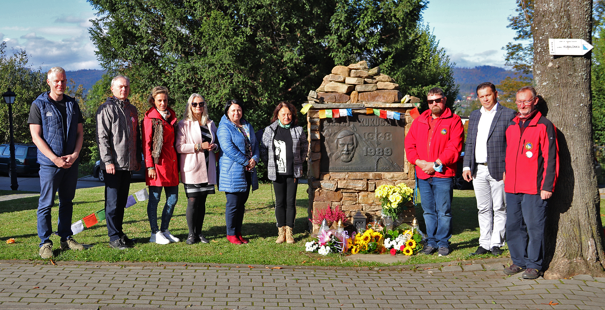 Zwieńczeniem spotkania było złożenie kwiatów pod pomnikiem Jerzego Kukuczki w parku w Istebnej.