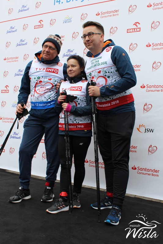 Ambasadorem Biegu po Nowe Życie jest Przemysław Saleta, który przed laty oddał nerkę swojej córce Nicole. Oczywiście, pojawił się na starcie sobotniego wydarzenia, podobnie jak aktor Rafał Zawierucha, który uczestniczył w wydarzeniu nie po raz pierwszy – Uwielbiam tu przyjeżdżać, tutaj jest wspaniała atmosfera i cudowni ludzie. Warto wspierać to wydarzenie, trzeba uświadamiać ludziom, zwłaszcza młodym, że nie ma się czego bać, że warto podpisać oświadczenie woli i nosić je ze sobą – mówił Zawierucha. Od samego początku z Biegiem po Nowe Życie jest aktor Rafał Mroczek. – To wydarzenie ma przybliżyć, w czym jest problem, pokazać, jak mało wiemy na ten temat. Każdy może się w to wgłębić i podpisać oświadczenie woli zgodnie ze swoim sumieniem. Ja to zrobiłem już dawno – opowiadał Mroczek. Piosenkarka Małgorzata Andrzejewicz wspomina, że gdy jechała na pierwszy Bieg po Nowe Życie, kompletnie nic nie wiedziała na temat przeszczepów narządów. Po raz pierwszy z osobami po transplantacjach spotkała się dopiero na tym wydarzeniu. – To wspaniała inicjatywa, która propaguje dobro, a przede wszystkim uświadamia i edukuje społeczeństwo. Osoby po przeszczepieniach, które idą z nami w sztafetach, są w doskonałej kondycji, udowadniają, że transplantacja to naprawdę nowe życie. Uważam, że każdy z nas powinien nosić przy sobie oświadczenie woli, które sygnalizuje, na w wypadku naszej śmierci chcemy, by nasze narządy posłużyły innym – mówiła piosenkarka. Dwa lata temu nie wiedziałem co to transplantologia, dzisiaj ja i moja żona nosimy przy sobie świadectwa woli – dodał aktor Tomasz Oświeciński, który w wiślańskiej edycji uczestniczył po raz drugi.