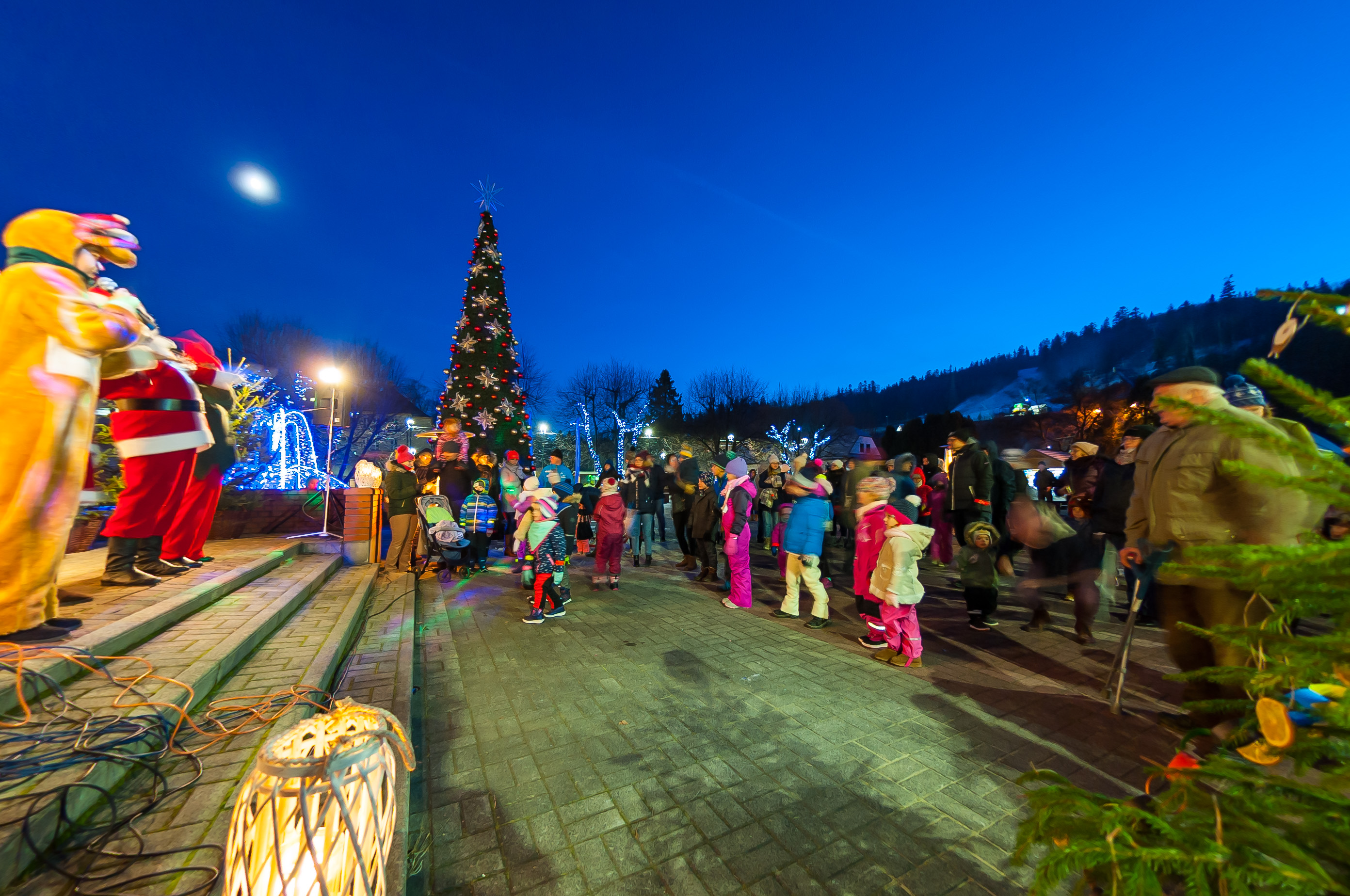 Podczas "Mikołajkowego blasku świąt", po spotkaniu z Mikołajem oraz wysłuchania kapeli góralskiej Wisła i zespołu Mała Wisła, na choince pojawiły się w końcu światła, na które czekały nie tylko dzieci. Po rozświetleniu zgromadzeni na rynku mogli z kolei wysłuchać koncertu kolęd w wykonaniu Antosi Kraszewskiej. Dodatkową atrakcją była akcja prowadzona przez Policję i Urząd Miasta Wisła pt. "Bądź widoczny". Dzieci mogły dowiedzieć się więcej o bezpieczeństwie i otrzymały od policjantów odblaski. O ich zastosowaniu opowiedział dzielnicowy mł. asp. Bogusław Bury a kurs pierwszej pomocy zaprezentował najmłodszym ratownik medyczny Wojciech Lamch. W rozświetleniu choinki wziął udział także Tomasz Bujok, burmistrz Wisły.
