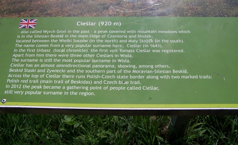 Przy słonecznej pogodzie, przepięknym krajobrazie na Dolinę Wisły, Beskid Śląski, Żywiecki, Śląsko-Morawski, Tatry, Małą Fatrę i Kysucze odbyło się już ósme z kolei Międzynarodowe Spotkanie Cieślarów, które można uznać za bardzo udaną imprezę rodzinną, międzypokoleniową, łączącą kraje, regiony, miejscowości, doliny, sąsiadów i rodziny przy wspólnej ideii wędrówki do swoich korzeni. W niedzielę 2 czerwca Cieślarowie i wszyscy ci kierzy majó ich radzi tradycyjnie wędrowali z różnych stron świata na położoną na granicy polskiej i czeskiej Górę Cieślar 918 m.n.p.m. Niektórym udało się dojechać samochodem na Mały Stożek i potem już na piechotę obok "Cieślarówki" prowadzonej przez Państwa Alicję i Bogusława Cieślarów dotrzeć na spotkanie na szczycie.