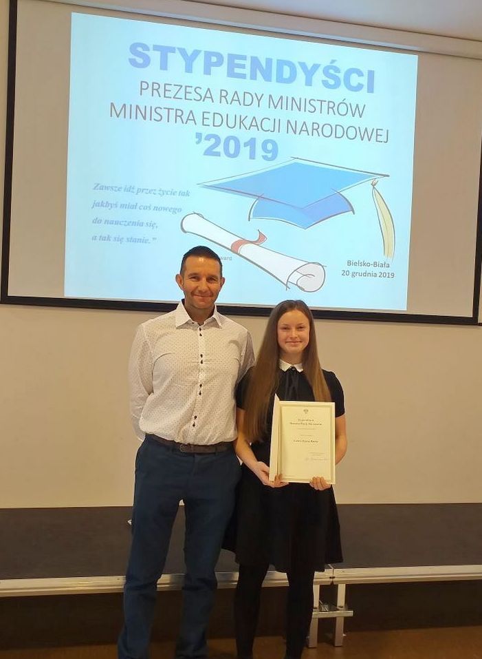Z ogromną przyjemnością informujemy, że Laura Kotrys, uczennica Liceum Ogólnokształcącego im. P. Stalmacha w Wiśle, otrzymała stypendium Prezesa Rady Ministrów jako najlepsza uczennica naszej szkoły. Uroczystość wręczenia stypendiów odbyła się 20 grudnia br. w Bielskim Centrum Edukacji. Laura jest przykładem, że świetne wyniki w nauce mogą iść w parze z uprawianiem sportu. Gratulujemy i życzymy kolejnych sukcesów zarówno w nauce, jak i na koszykarskim parkiecie.