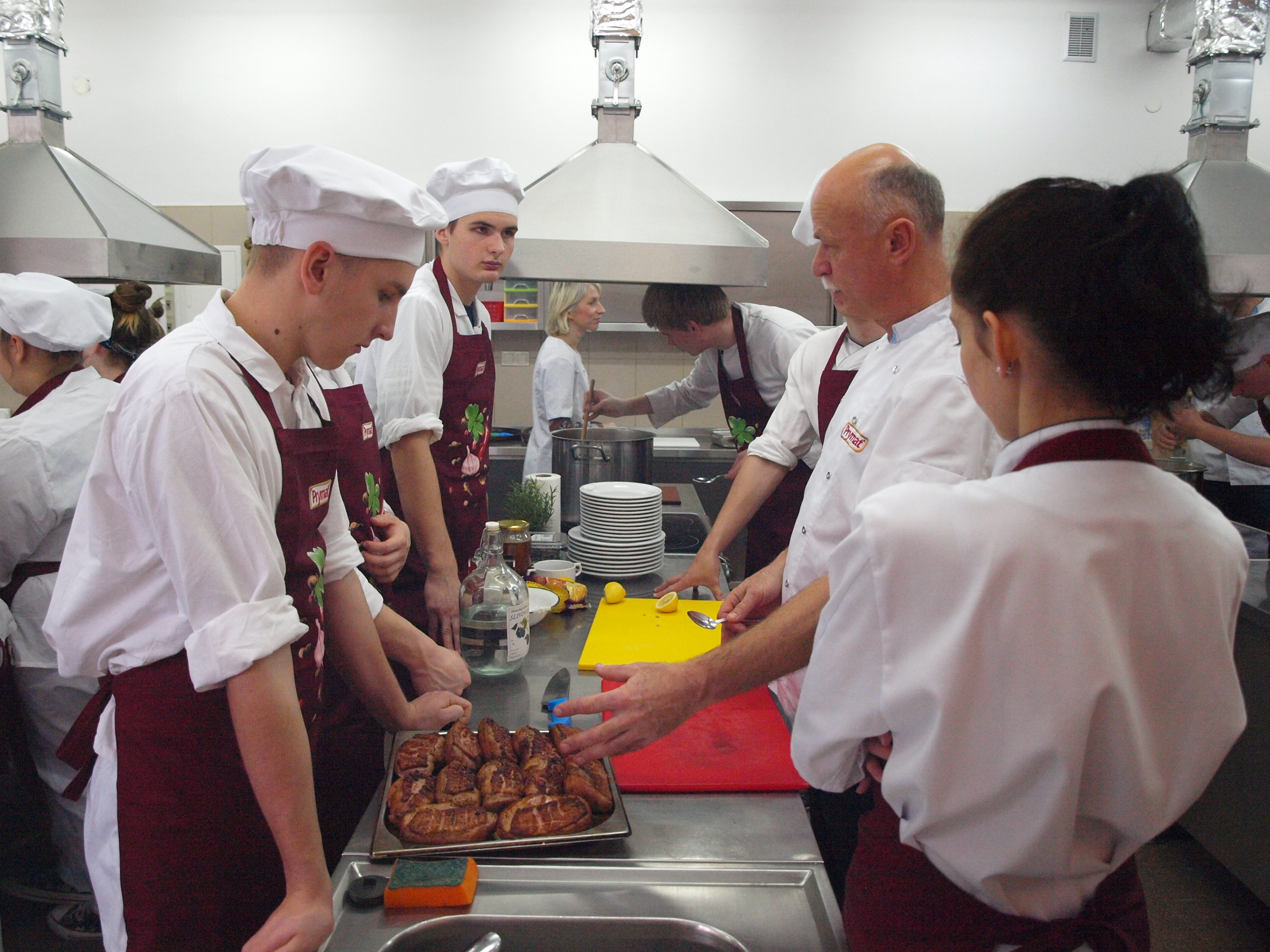 Serdecznie dziękujemy firmie Prymat za pomoc i wsparcie w organizacji przedsięwzięcia kulinarnego, Panu Robertowi Sowie za udzielenie uczniom cennych wskazówek do dalszej pracy nad doskonaleniem własnego warsztatu pracy, a Paniom Luizie Kezwoń oraz Dorocie Mendrek za fachową pomoc w organizacji warsztatów.