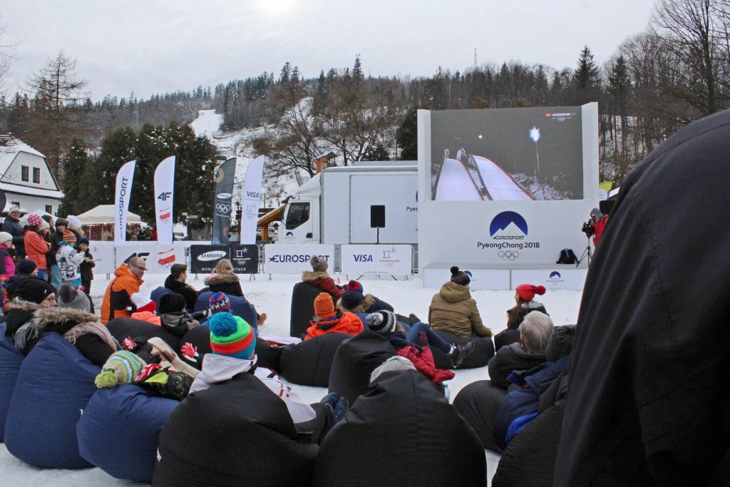 Dziś w Strefie Kibica Eurosportu w Wiśle było bardzo tłoczno i radośnie. Biało-czerwoni fani dopingowali polskich skoczków! Na końcu była wielka radość, bo złoty medal zdobył Kamil Stoch!