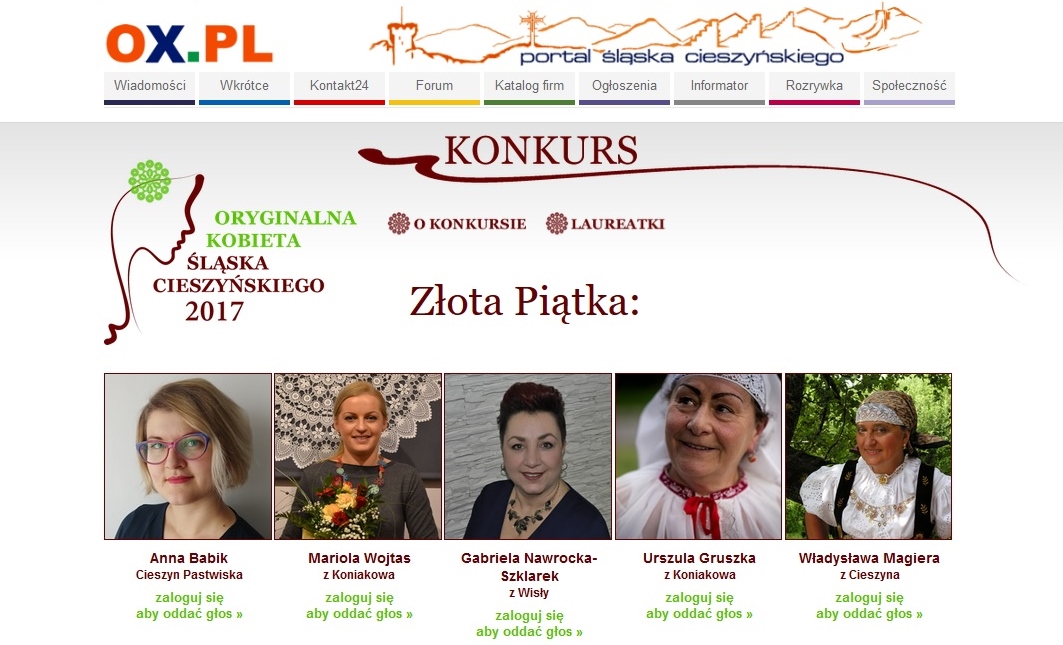 Trwa głosowanie w plebiscycie na Oryginalną Kobietę Śląska Cieszyńskiego. Wśród kandydatek jest mieszkanka Wisły Gabriela Nawrocka-Szklarek. Zachęcamy do głosowania na kandydatkę z naszego miasta.