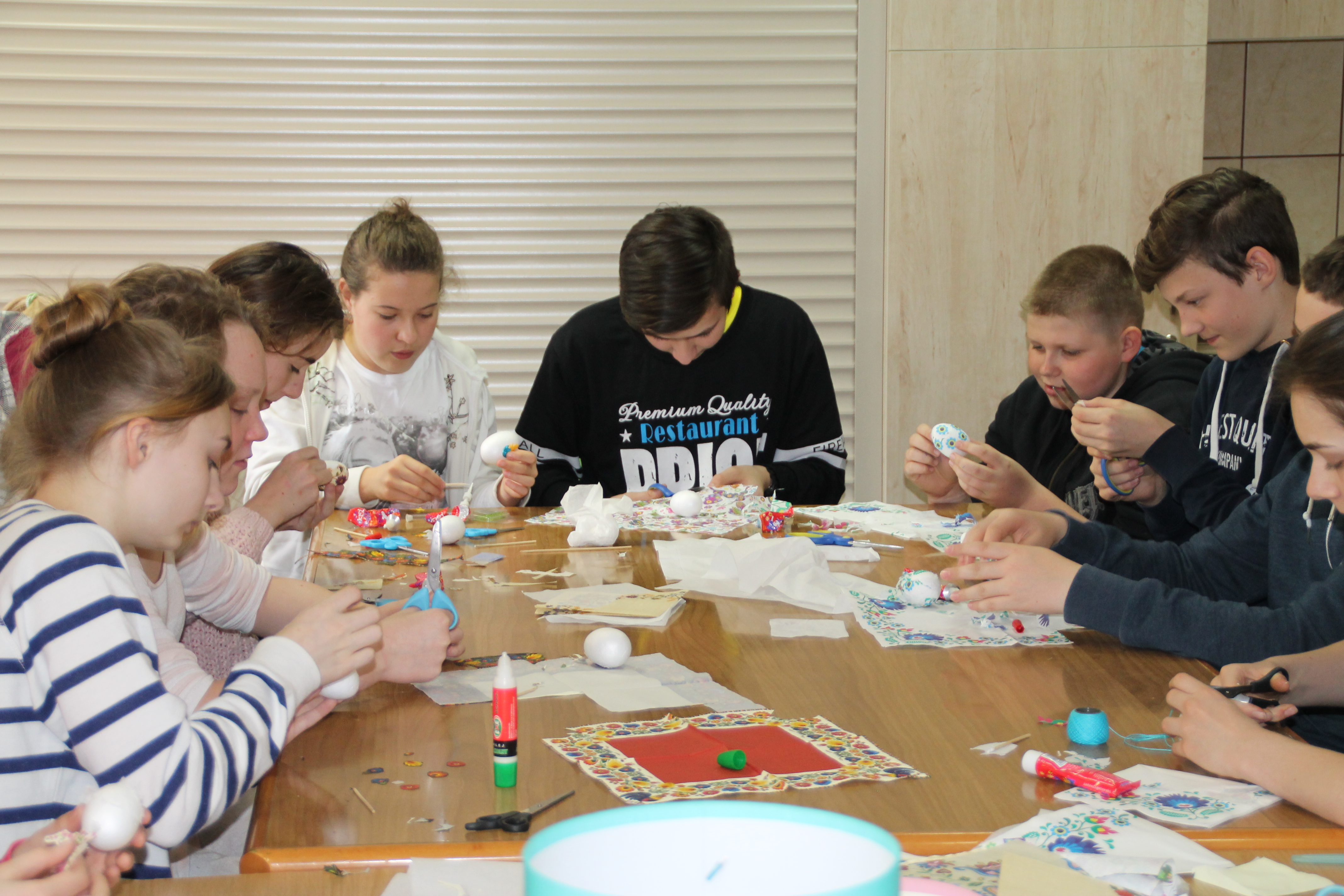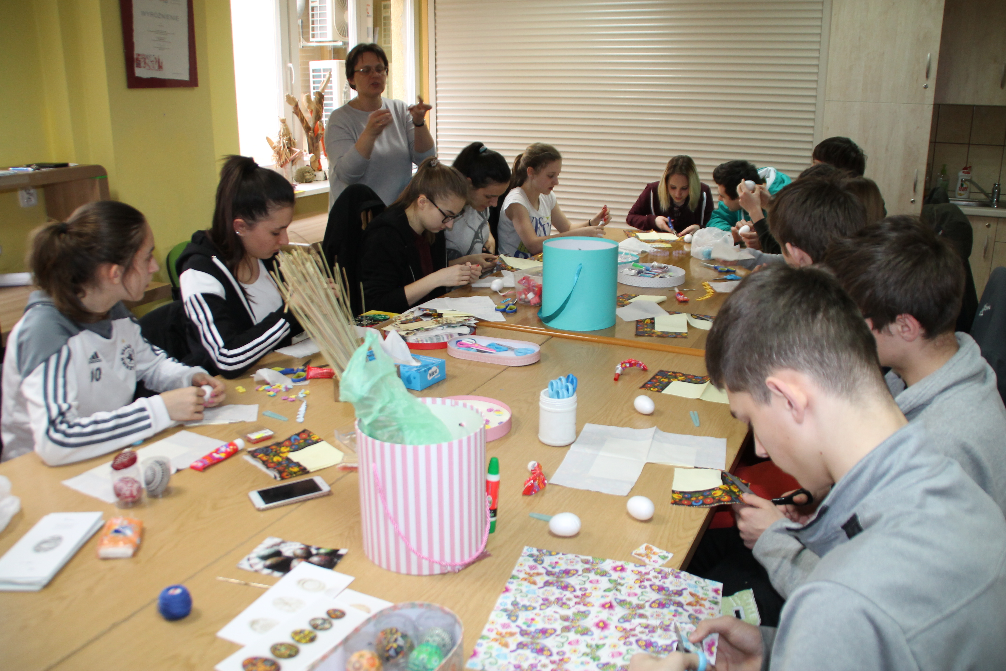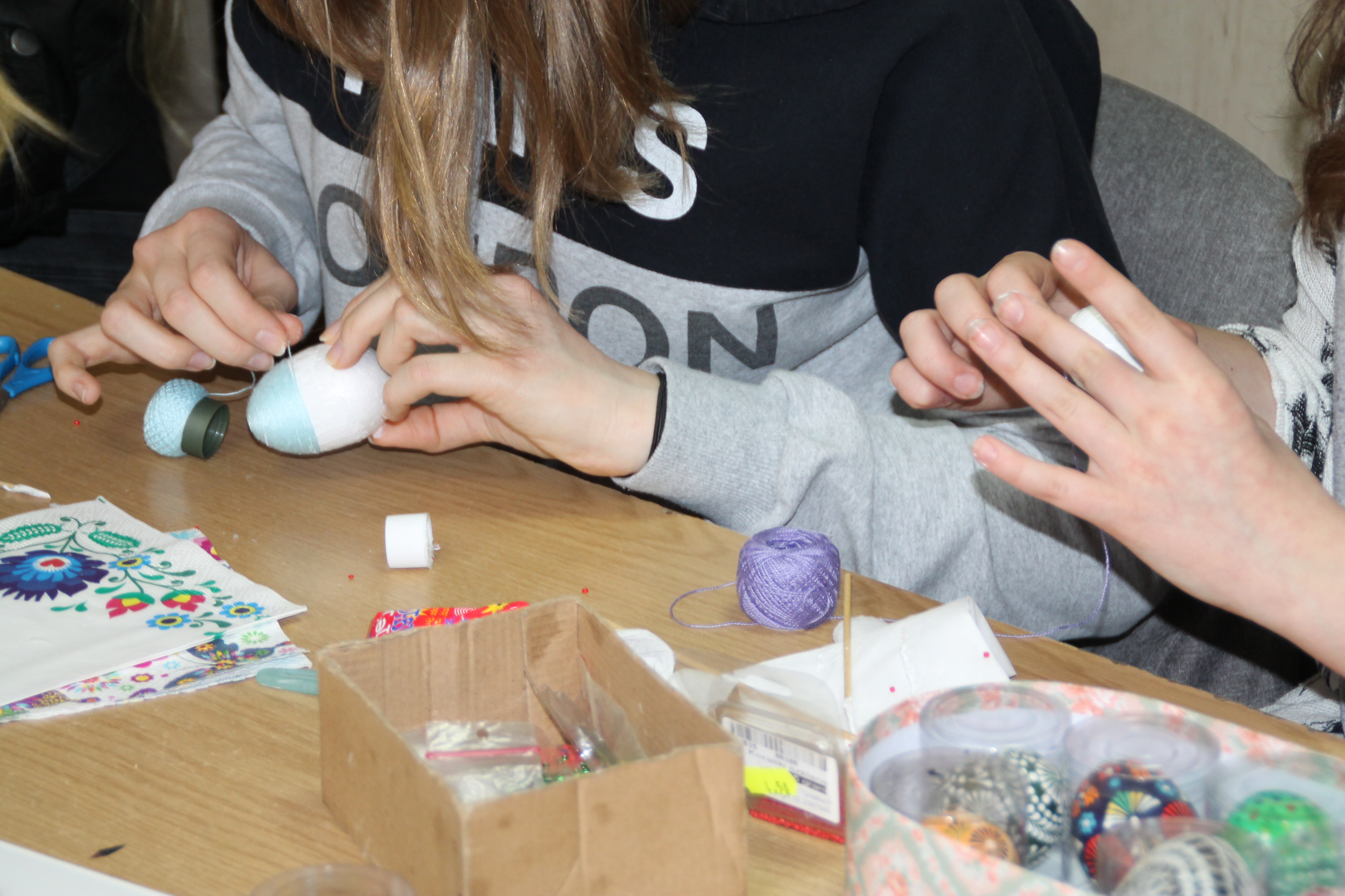 Również w tym samym dniu już przed południem rozpoczęły się warsztaty wielkanocne zorganizowane dla uczniów wiślańskich szkół oraz osób indywidualnych. Uczestnicy warsztatów wykonywali różnymi technikami świąteczne pisanki i oraz wielkanocne zające z siana. Warsztaty poprowadziły: Pani Małgorzata Sznura, Pani Ilona Długosz oraz Pani Ewa Lazar.