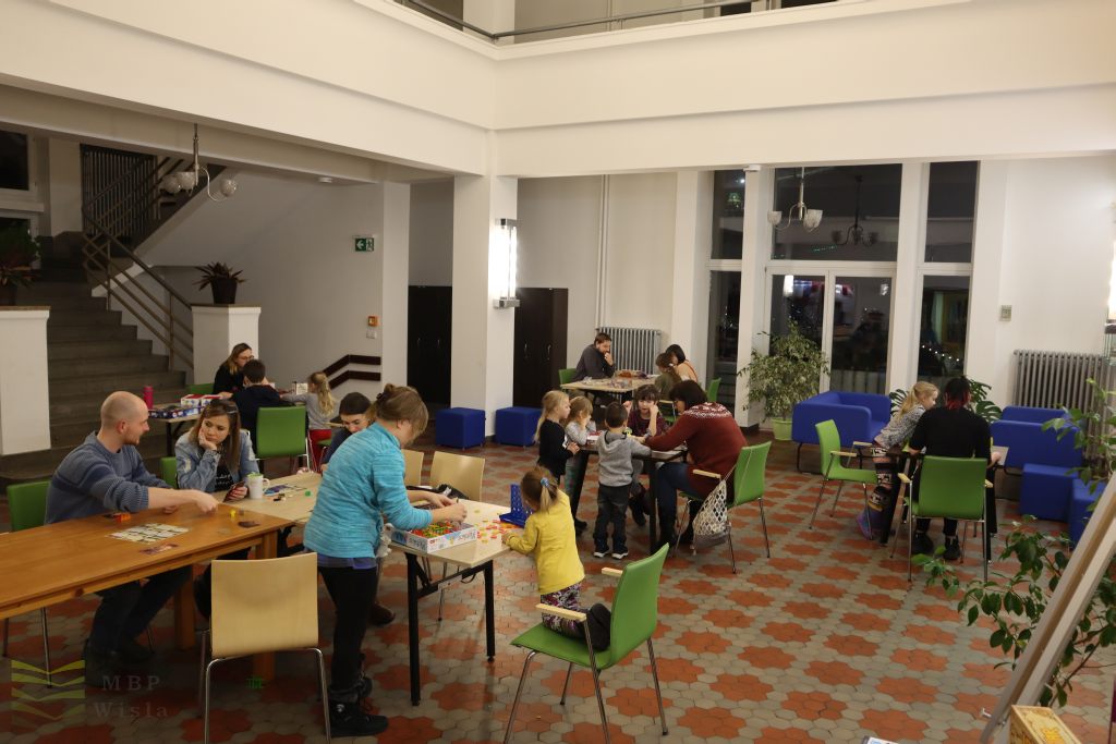 Dziękujemy wspaniałym czytelnikom, którzy przybyli rodzinnie na pierwsze spotkanie klubu gier planszowych. 17 stycznia spędziliśmy razem emocjonujące popołudnie. Usiedliśmy w bibliotecznym holu przy kawie, herbacie i ciasteczkach grając w gry strategiczne, logiczne, karciane i zręcznościowe. W zasobie bibliotecznym mamy 64 gry, które są dostępne dla naszych czytelników na miejscu oraz do wypożyczenia i rozegrania kilku partyjek w domowym zaciszu. Część gier została też udostępniona przez naszych zaprzyjaźnionych „mistrzów gry”: Mirka i Doris Cieślar, którzy zgodzili się prowadzić nasz biblioteczny klub i wtajemniczać nowych graczy w meandry, nierzadko skomplikowanych instrukcji. Dziękujemy też Krzyśkowi Kiecko, który zrealizował specjalnie dla nas filmik promujący klub gier. Pamiętajcie, że w każdej chwili możecie do nas dołączyć.