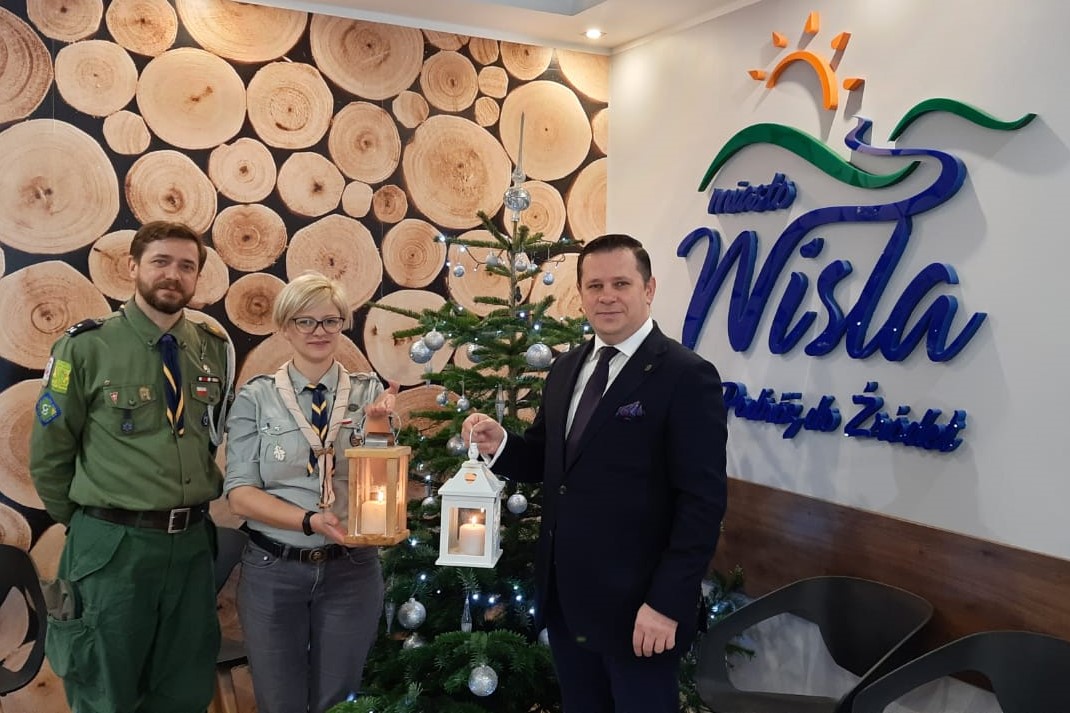 Władze cieszyńskiego hufca ZHP komendant harcmistrz Tomasz Głasek oraz z-ca komendanta podharcmistrz Kinga Karolewska odwiedzili burmistrza Tomasza Bujoka, aby przekazać Betlejemskie Światło Pokoju. Jest to coroczna skautowa i harcerska akcja przekazywania przed Świętami Bożego Narodzenia symbolicznego ognia, zapalonego w grocie narodzenia Chrystusa w Betlejem. Za pośrednictwem harcerzy światło dociera do setek tysięcy mieszkańców. Tegoroczna akcja odbywa się pod hasłem "Światło nadziei", i właśnie tej nadziei na lepszy czas harcerze życzą mieszkańcom Wisły.