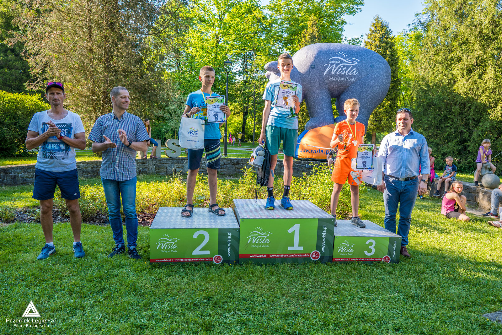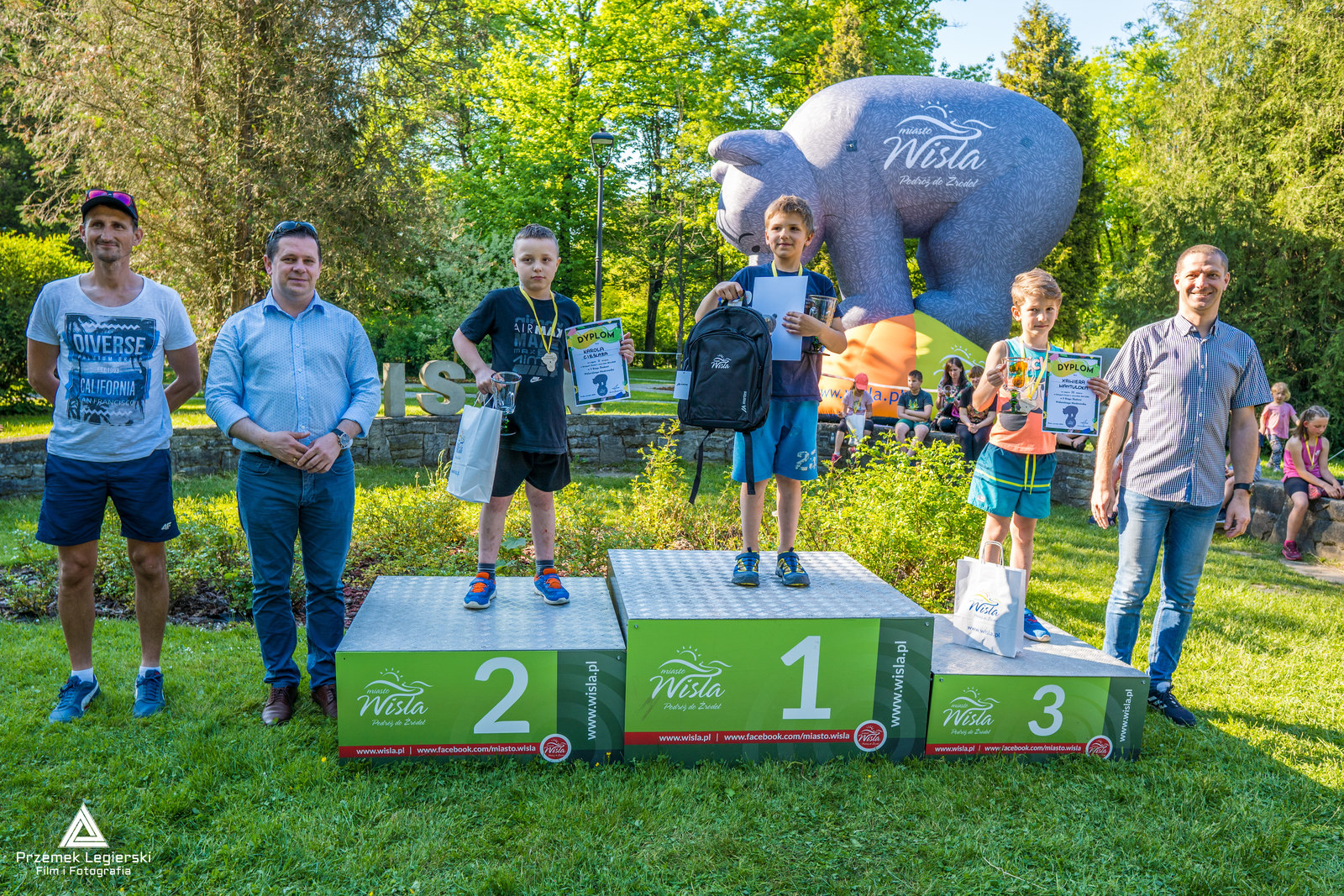 Młodych adeptów na trasach biegu dopingowało liczne grono kibiców, składające się w znacznej mierze z rodziców i bliskich. Wśród nich obecny był również burmistrz Tomasz Bujok, Przewodniczący Rady Miasta Wisła Janusz Podżorski oraz Przewodniczący Komisji Promocji, Turystyki, Kultury i Sportu Sławomir Wantulok. Wręczyli oni również nagrody, dyplomy i statuetki trzem najlepszym w każdej kategorii wiekowej. Zwycięzcy każdej kategorii otrzymali dodatkowo maskotki wiślańskiego Niedźwiadka. W krótkim podsumowaniu burmistrz pogratulował wszystkim uczestnikom, wyraził ogromne zadowolenie z faktu, że w biegu wzięła udział tak duża grupa dzieci z Wisły.