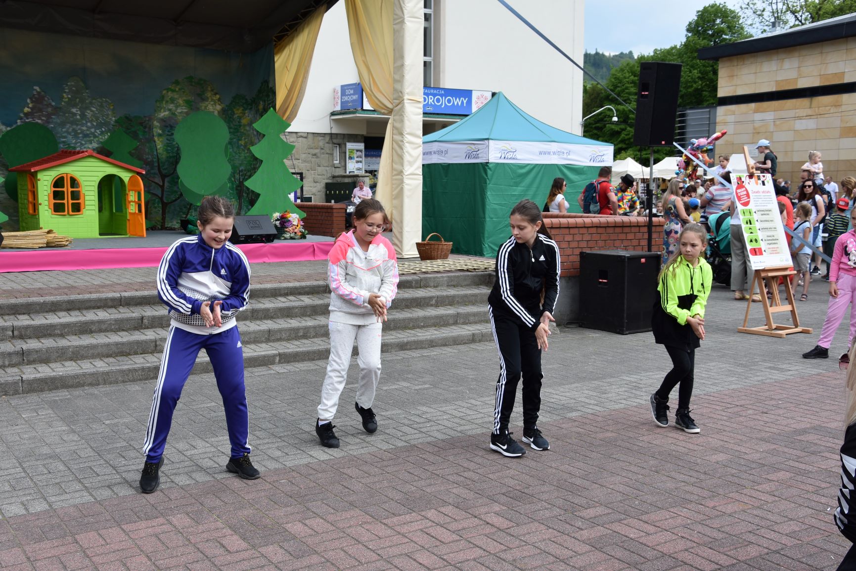 W sobotę w samo południe na Placu Hoffa rozpoczęło się świętowanie z najmłodszymi. Oprócz spektaklu "Świnki 3" na wiślańskim rynku wystąpiły zespoły taneczne działające przy WCK: Zozole, Afera i Alibi. Nie zabrakło też interaktywnego koncertu dla dzieci, animacji, malowania twarzy, gier i zabaw.