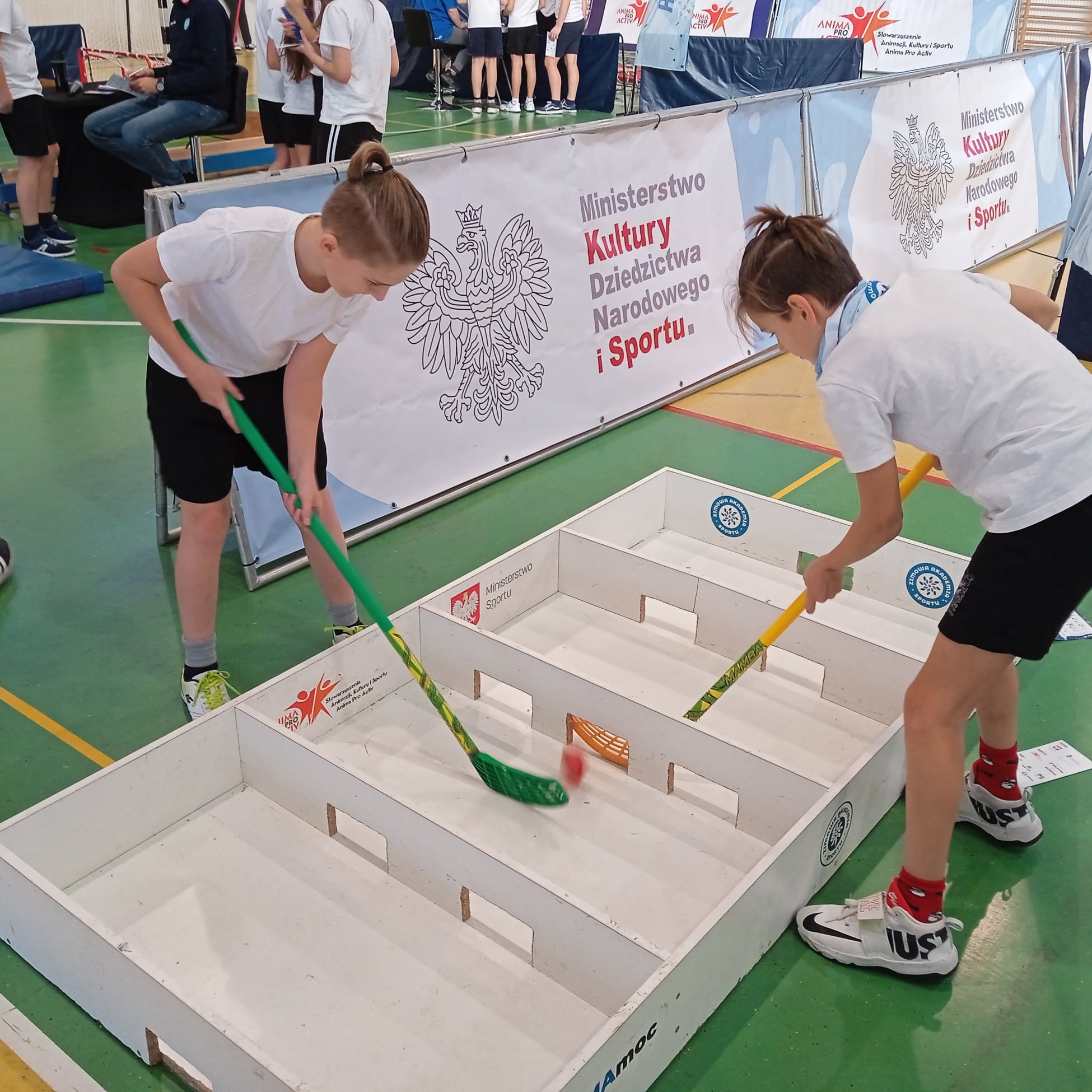 W trakcie imprezy uczniowie rywalizowali pucharowo w dwóch konkurencjach: wyścigach na sankach oraz hokeju.