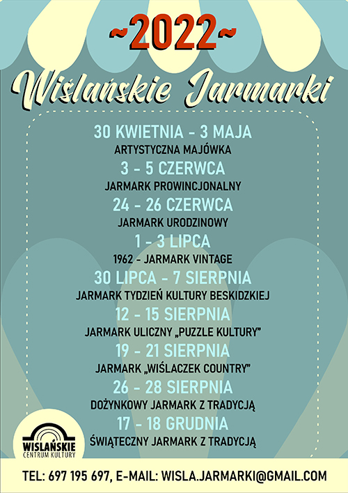Jarmark Artystyczna Majówka otwiera sezon jarmarków w Wiśle. W roku 2022 potrwa od 30 kwietnia do 3 maja.