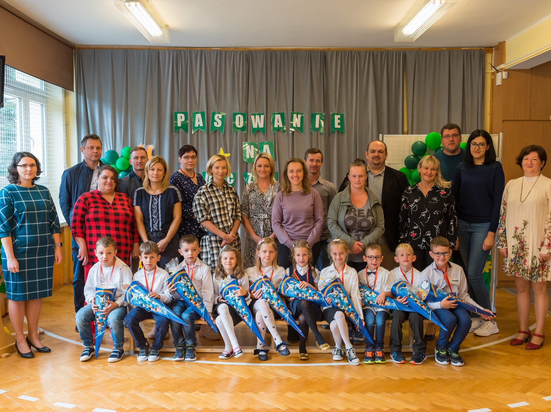 Do grona naszej szkolnej społeczności przyjęli pierwszoklasistów Pani Dyrektor Alicja Pieszka, przedstawiciele Samorządu Uczniowskiego Jonasz Cieślar (przewodniczący szkoły) i Paulina Puszyńska (zastępca) oraz uczniowie klasy 2. Dzieci zostały obdarowane pięknymi prezentami współfinansowanymi przez Radę Rodziców, za co dziękujemy. A naszym uczniom życzymy samych sukcesów na szkolnej drodze.