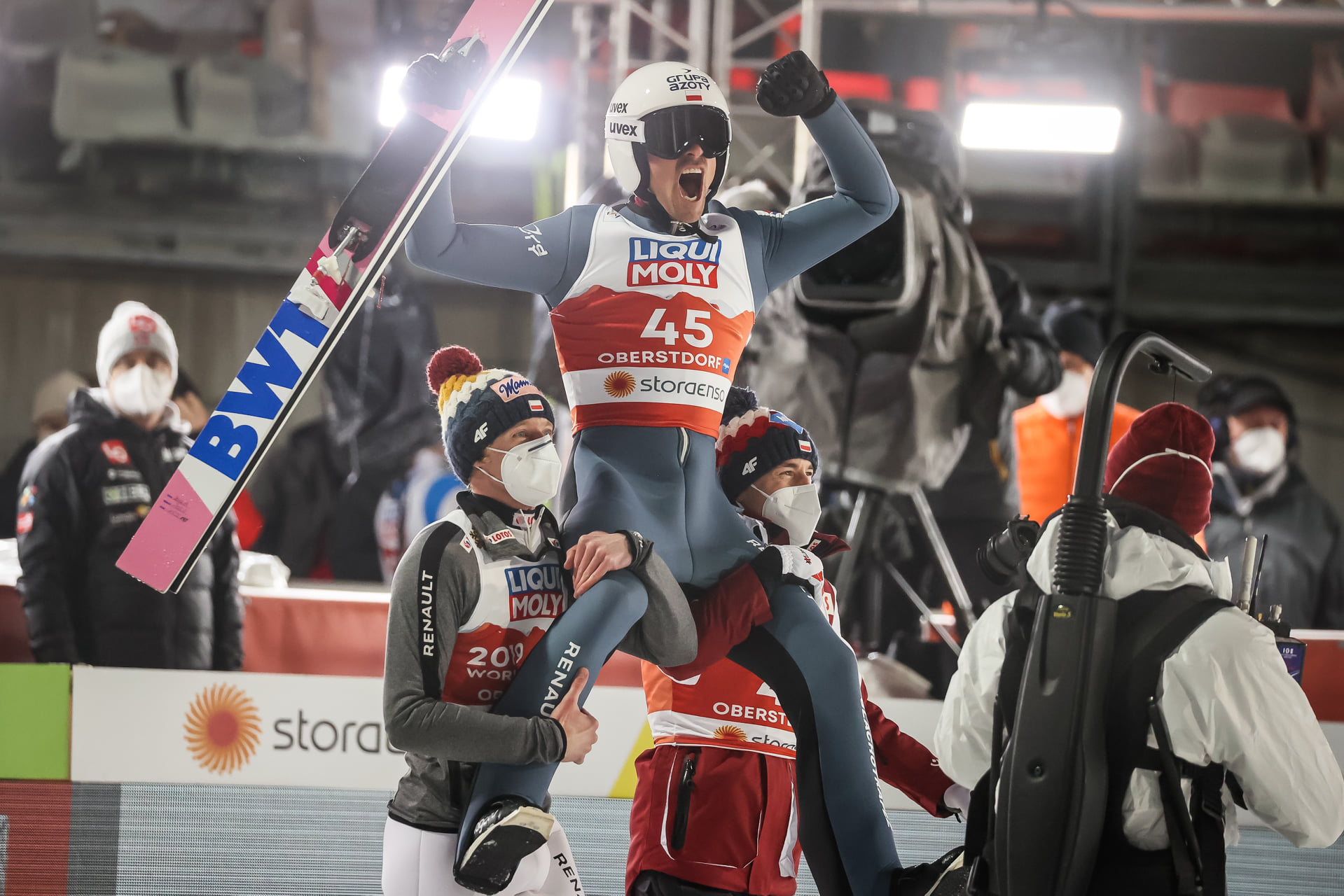To był fantastyczny wieczór dla wiślanina Piotra Żyły, który w pięknym stylu sięgnął po tytul mistrza świata na skoczni normalnej w Oberstdorfie i osiągnął najlepszy w karierze rezultat. Wicemistrzem świata został Niemiec Karl Geiger (103,5 i 102 m), który stracił do Żyły 3,6 punktu, a brązowy medal zdobył Słoweniec Anze Lanisek (102,5 i 101 m).