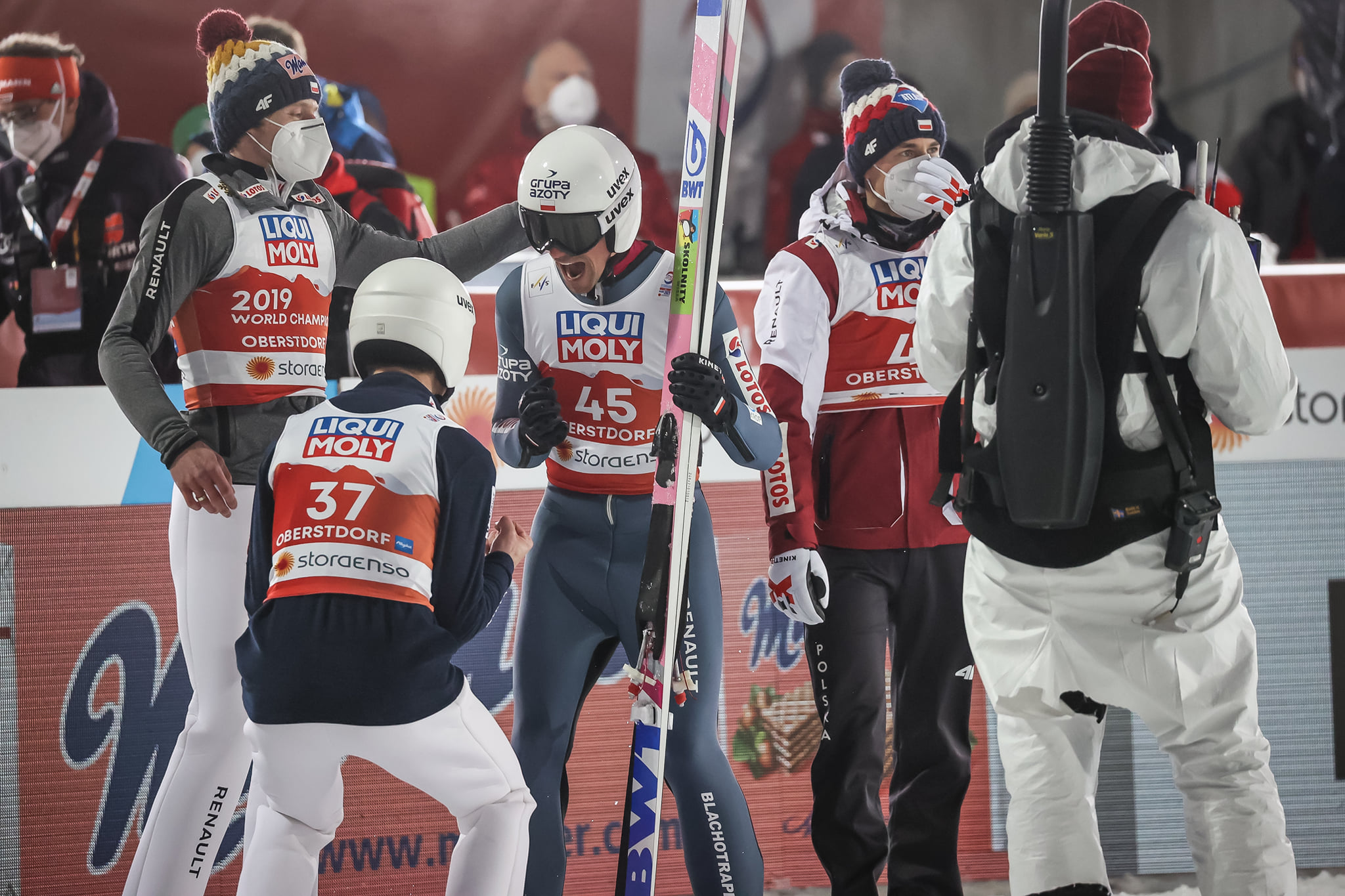 Na bardzo dobrym piątym miejscu konkurs na skoczni normalnej zakończył Dawid Kubacki, który oddał skoki na odległość 102 i 99 metrów. Kamil Stoch w pierwszych zawodach na Mistrzostwach Świata w Oberstdorfie zajął 22. pozycję, dwukrotnie uzyskując 96 metrów. Czołową "30" zamknął Andrzej Stękała, który uzyskał 95 i 87,5 metra.