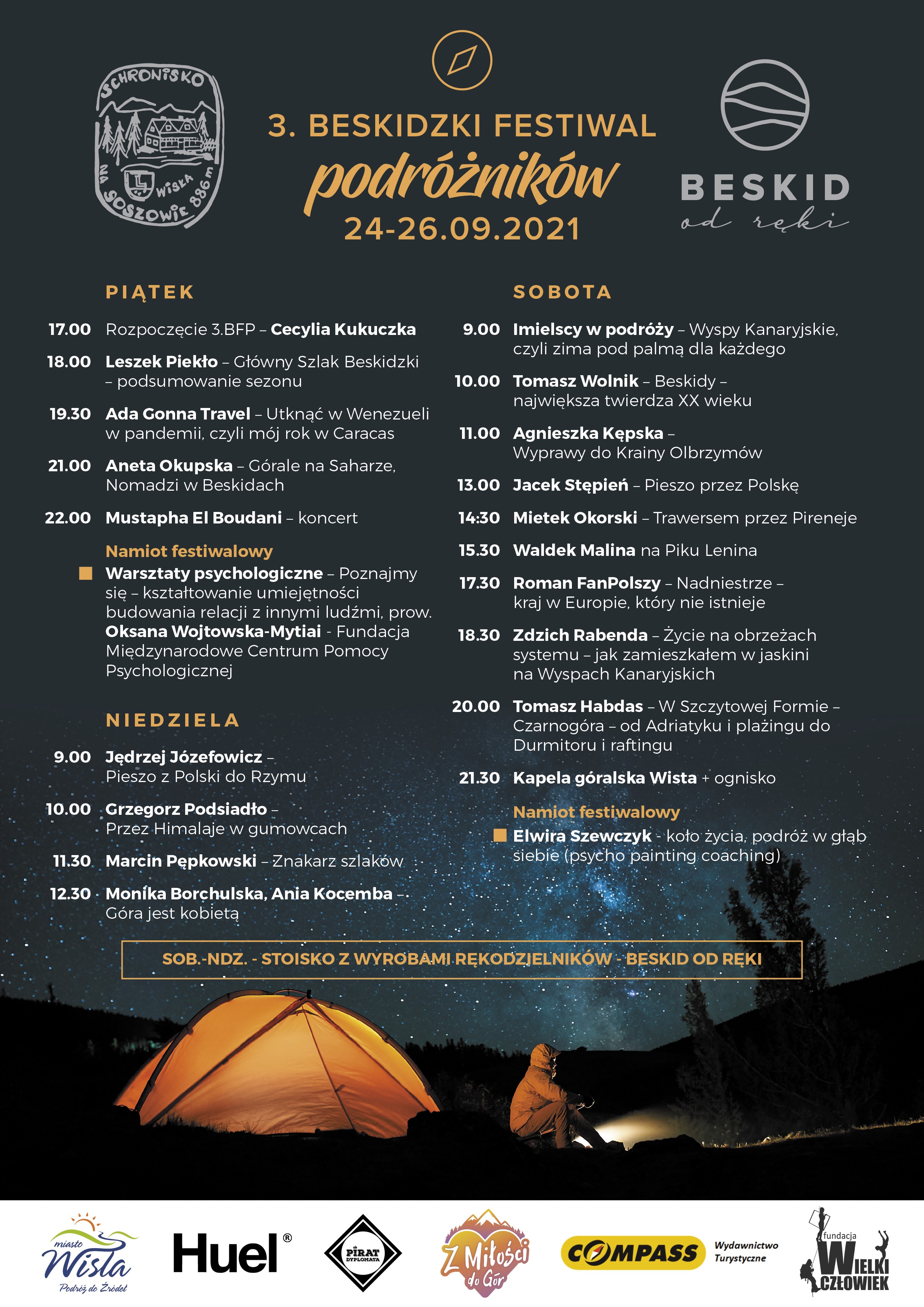 Oprócz prelekcji, będzie też część warsztatowa a także wieczorne występy muzyczne – w piątek koncert Mustaphy El Boudani z Maroka, a w sobotę przy ognisku lokalnej kapeli góralskiej Wista. Organizatorzy przygotowali też stoiska z rękodziełem i festiwalowymi pamiątkami.