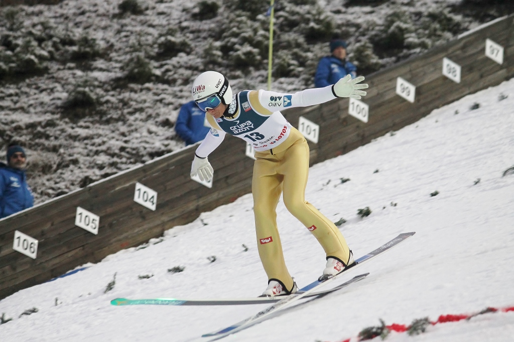 Drugie miejsce na podium zajął reprezentant gospodarzy Kamil Stoch. Uzyskał notę 258,2 pkt. za skoki, w których lądował na 121 i 129,5 metrze. – Na skoczni panowały dobre warunki, a obiekt był bardzo dobrze przygotowany. Drugie miejsce jest nagrodą za dobrą pracę, którą wykonałem na skoczni – podsumował zawody dwukrotny mistrz olimpijski.