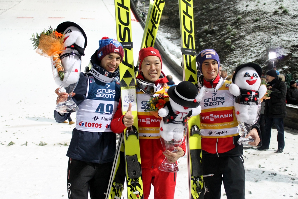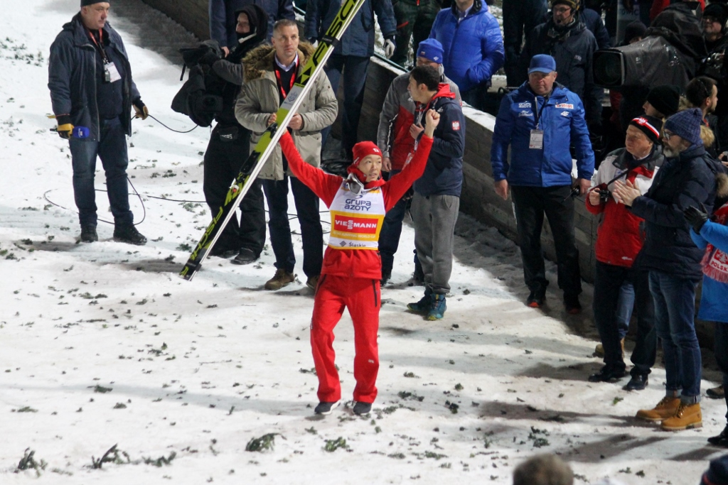 Triumfator zawodów w Wiśle uzyskał odległości 124 i 126,5 metra, które złożyły się na notę 260,5 pkt. – Jestem szczęśliwy, dziękuję. Wygrałem po raz pierwszy i bardzo się cieszę – powiedział krótko wyraźnie zaskoczony swoim świetnym wynikiem Junshiro Kobayashi.