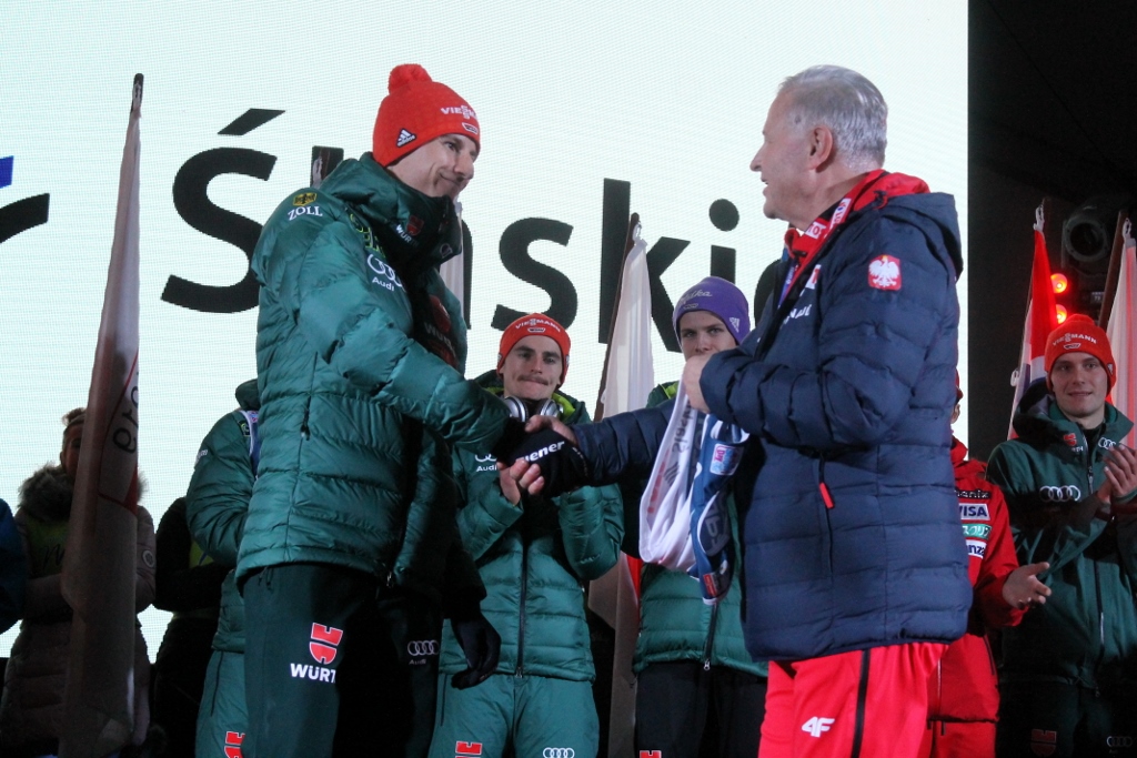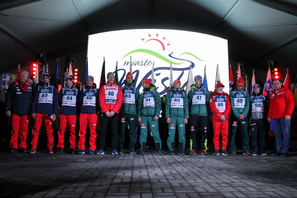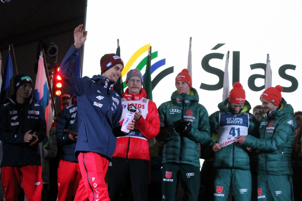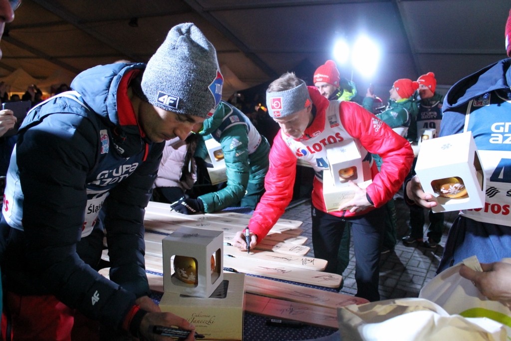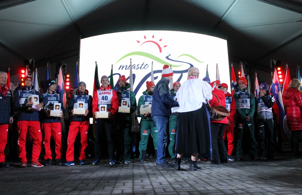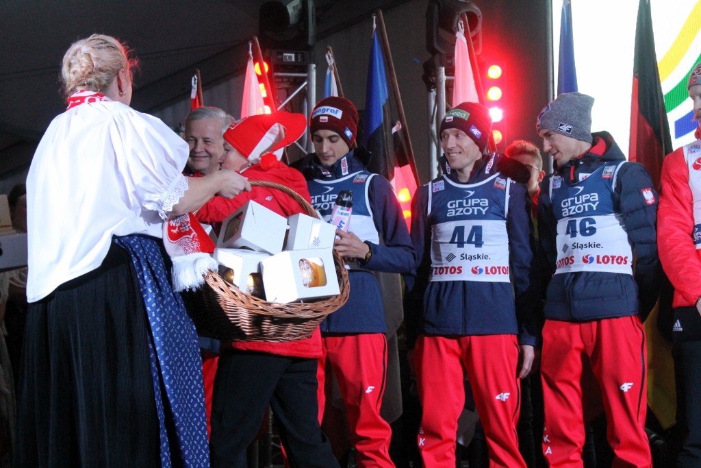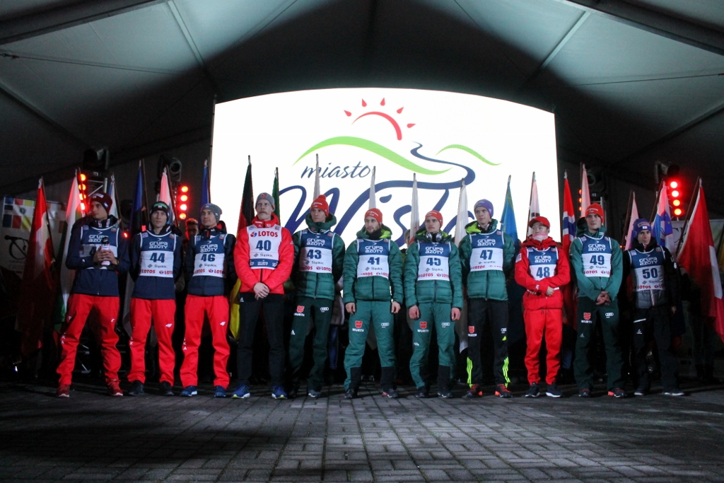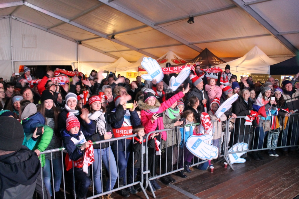 Zanim skoczkowie pojawili się w centrum miasta, Krzysztof Głombowicz zagrzewał publikę do zabawy i pięknie komentował kwalifikacje, które kibice śledzili na wielkim telebimie. Następnie na góralską nutę przygrywała kapela Zespołu Regionalnego "Wisła", a aplauz zgromadzonch kibiców osiągnął apogeum, gdy na scenie pojawili się zawodnicy. Wśród nich był m.in. Stefan Kraft, zdobywca Kryształowej Kuli z ubiegłego sezonu, który wygrał rywalizację na skoczni w Malince w pierwszym dniu weekendu ze skokami. W najlepszej jedenastce znaleźli sie trzej Polacy - Kamil Stoch, Stefan Hula i Maciej Kot. Kompletne wyniki kwalifikacji można obejrzeć TUTAJ.