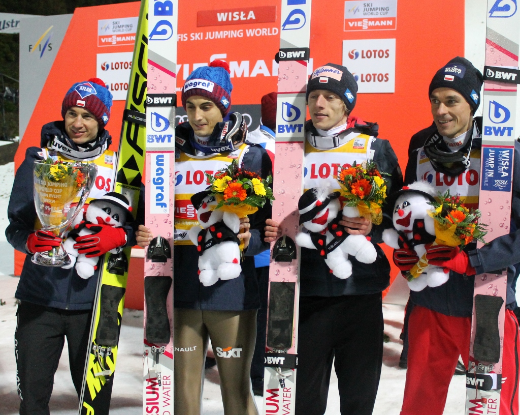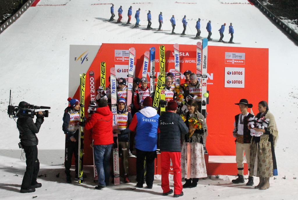 - Skakło nam się dzisiaj dobrze, choć nie obyło się bez nerwów. Konkurs był bardzo ciekawy i zakończył się dla nas miłym akcentem, bo miejscem na podium. Pokazaliśmy, że jako drużyna prezentujemy nadal wysoki poziom. Chcę dodać, że skocznia była bardzo dobrze przygotowana - podsumował zawody Kamil Stoch. - Cieszę się, że mogliśmy stanąć na podium przed własną publicznością, bo w Wiśle i Zakopanem zawsze taki sukces bardzo dobrze smakuje. Inauguracja w Polsce ma swoje plusy i minusy, ale ja staram się szukać pozytywów. Kibice nam pomagają, lubimy skakać u siebie w tak wspaniałej atmosferze, z drugiej strony zawsze emocje są większe - dodał Maciej Kot, dziękując kibicom za doping.