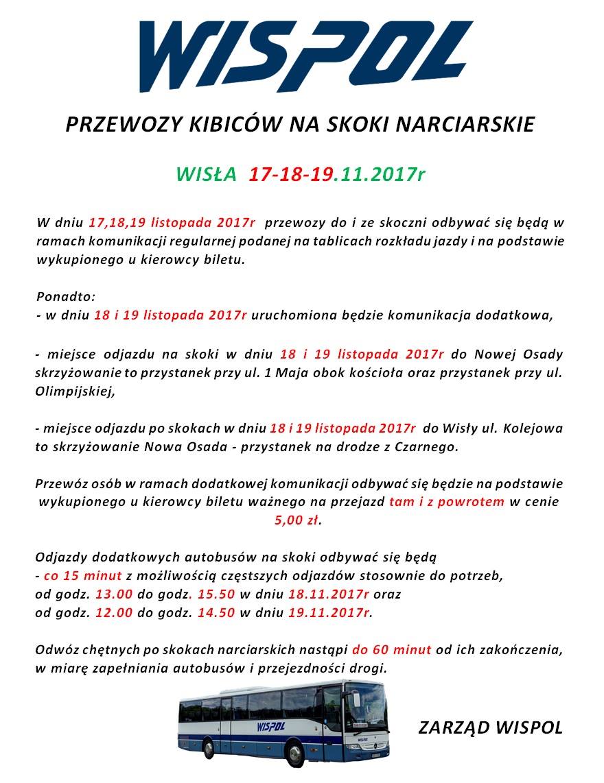 Informujemy, że w trakcie trwania Pucharu Świata w skokach narciarskich w Wiśle uruchomiona zostanie komunikacja dodatkowa.