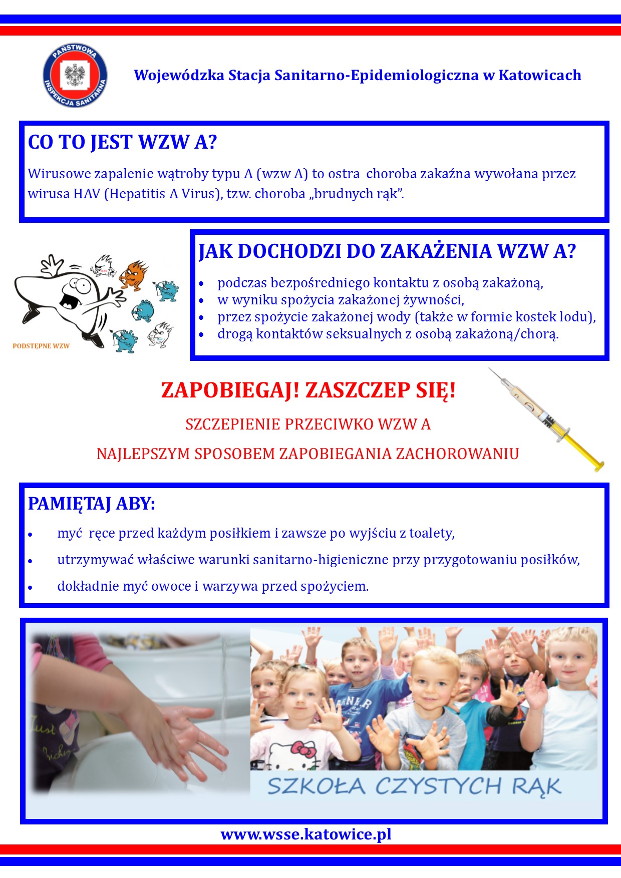 W związku z dynamicznym wzrostem liczby przypadków wirusowego zapalenia wątroby typu A (WZW A) w województwie śląskim informujemy: